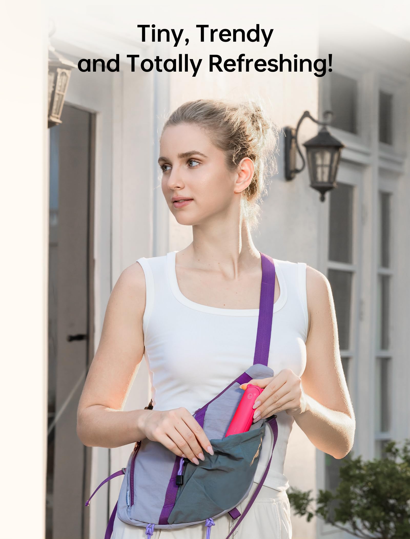 A Palm-sized Backup Charger: Designed with a pocket size, this portable fan easily fits into any bag for on-the-go convenience; Doubling as a backup power bank, it keeps your devices charged when needed, making it your travel and summer essentials