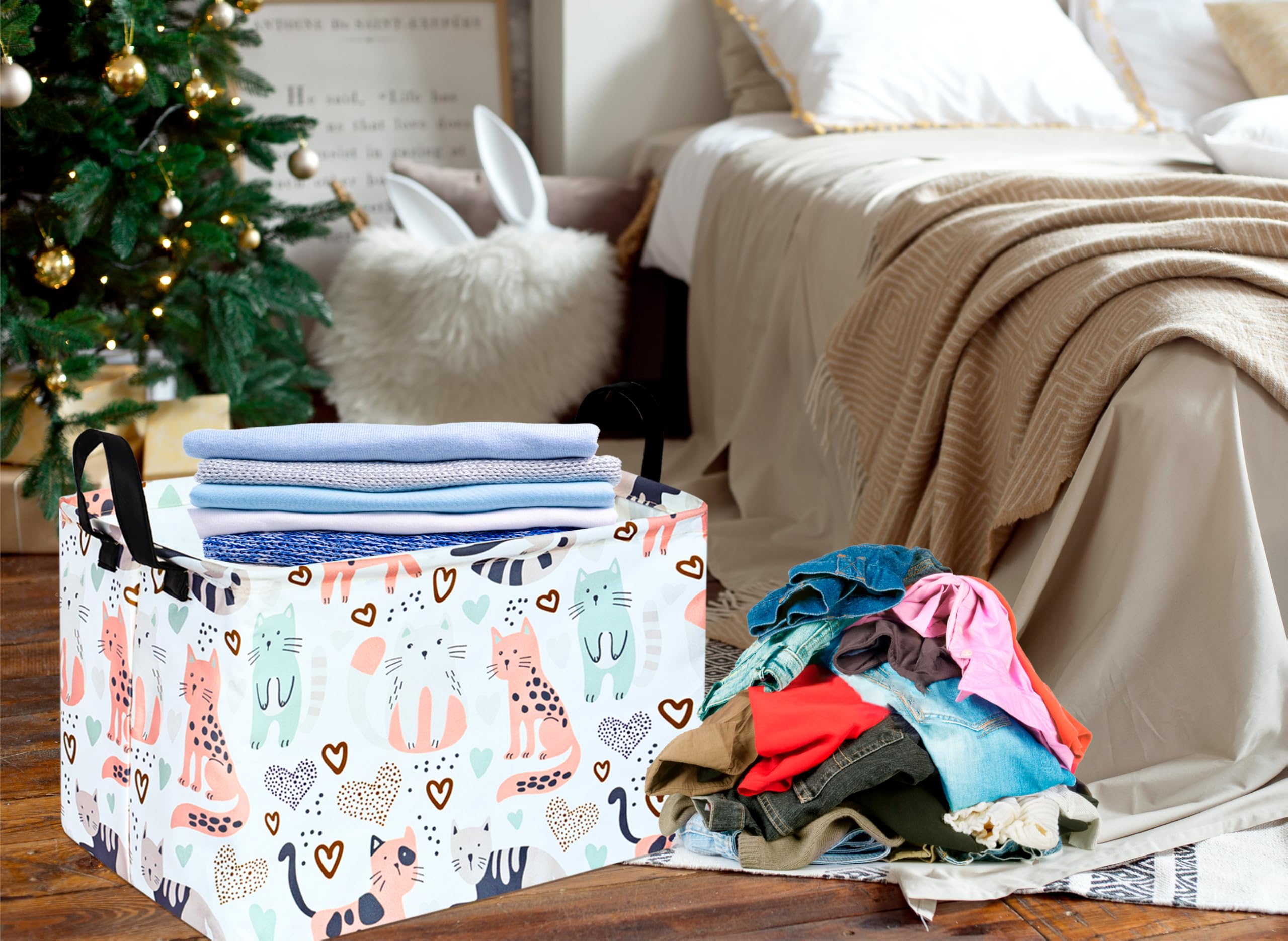 ENJOY A CLEAN & NEAT ROOM NOW Imaging a messy room that all of daily sundries left everywhere. Imaging looking round for the item you need to use urgently in a messy room. Imaging the kids or pets left the sundries all over the place. You need a good helper to help you solve these problems! With our storage bins/laundry hamper, you will have a designated spot to neatly store items and keep your family and living spaces organized and efficient while still being within the comfort of your home. SAVE SPACE IN YOUR RESIDENCE To be a competent helper, it can not only help you organize and store the sundries to save room space, but also can be folded when in no use. SAVE YOUR PRECIOUS TIME We deeply know that time is very precious and important to you. Our storage bins will help you sort and store your contents tidily. Don't waste time to look for them any more! Just feel free to handle big things and leave us small things. ORGANIZE IN STYLE - START FROM NOW ON With modern and stylish design, our storage bins combine both of the ornamental and practical forms. They are not only household life good helpers but also charming decorations.