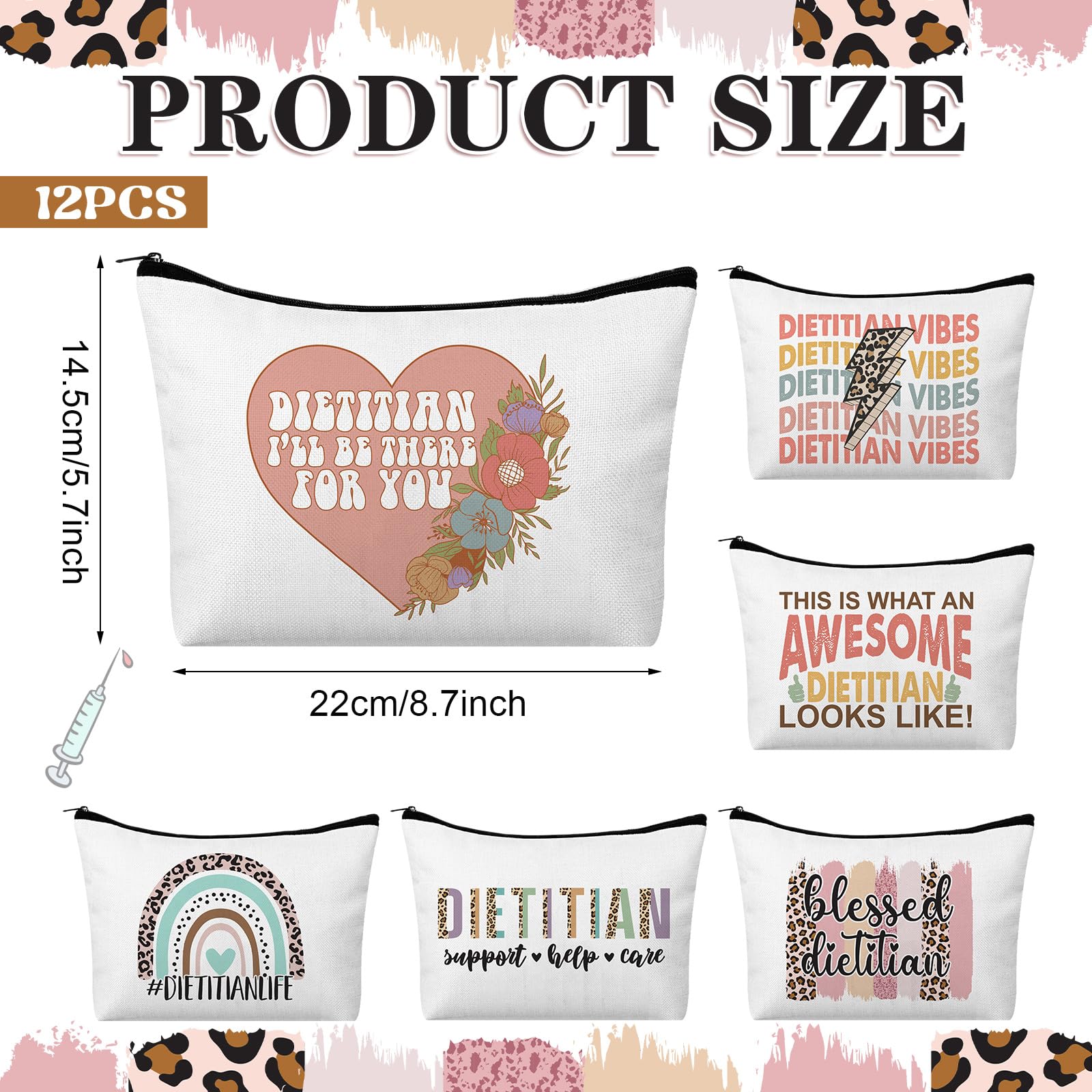 Nutritionist Gift Set: the package contains 12 nutritionist cosmetic bags, 6 different styles, enough to meet daily storage needs, for nutritionist
