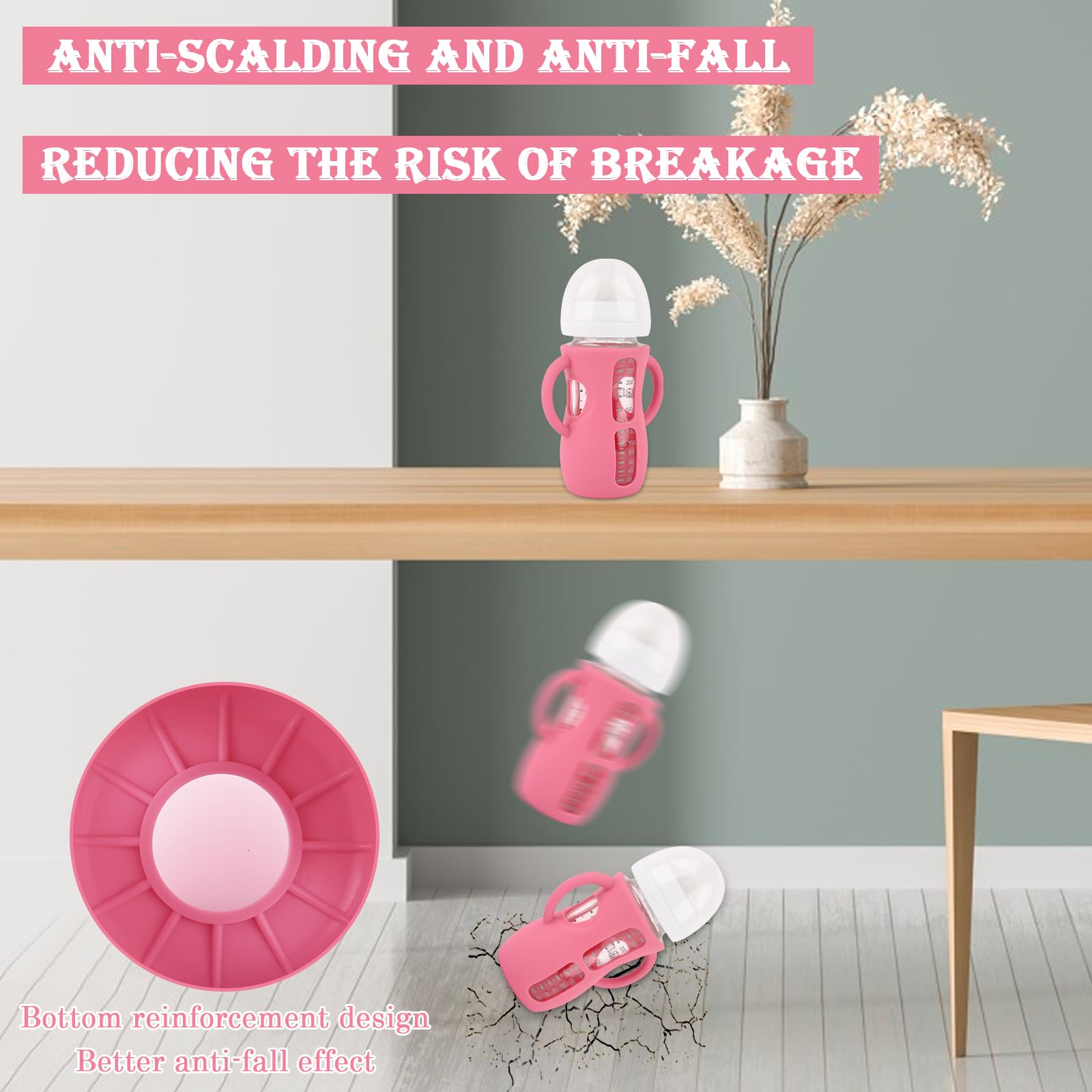 Silicone Bottle Sleeves with Handle Design: Smooth and soft, helps to exercise baby grip. The baby bottle handle has good flexibility and anti twist ability, even if the baby pulls and twists the handle while learning to grip, it can always return to its original good shape.