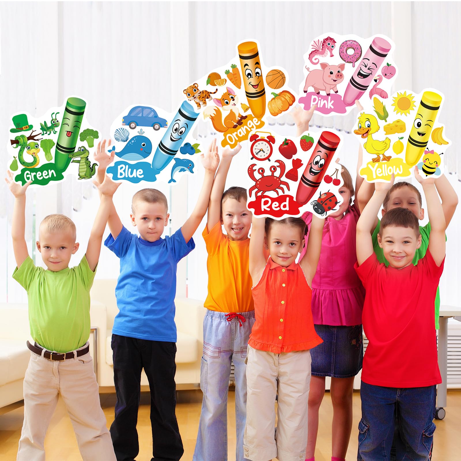 Unique Design: The color bulletin decoration has 11 common colors, with object patterns that will surely stand out and strengthen childrenβs memory, like animals, fruit, vegetable and different expression crayon bulletin board.