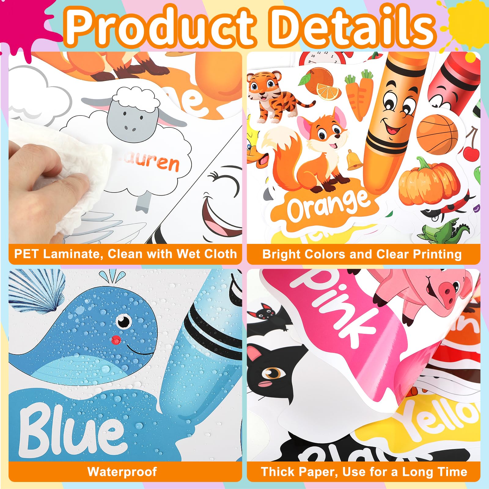Widely Applications: These crayon classroom decor can be applied as decorations in school, kindergarten ,office, bulletin board. Teacher and parents can stick them to the wall, blackboard or other places where kids can easily see, increasing learning atmosphere and help them learn crayon.