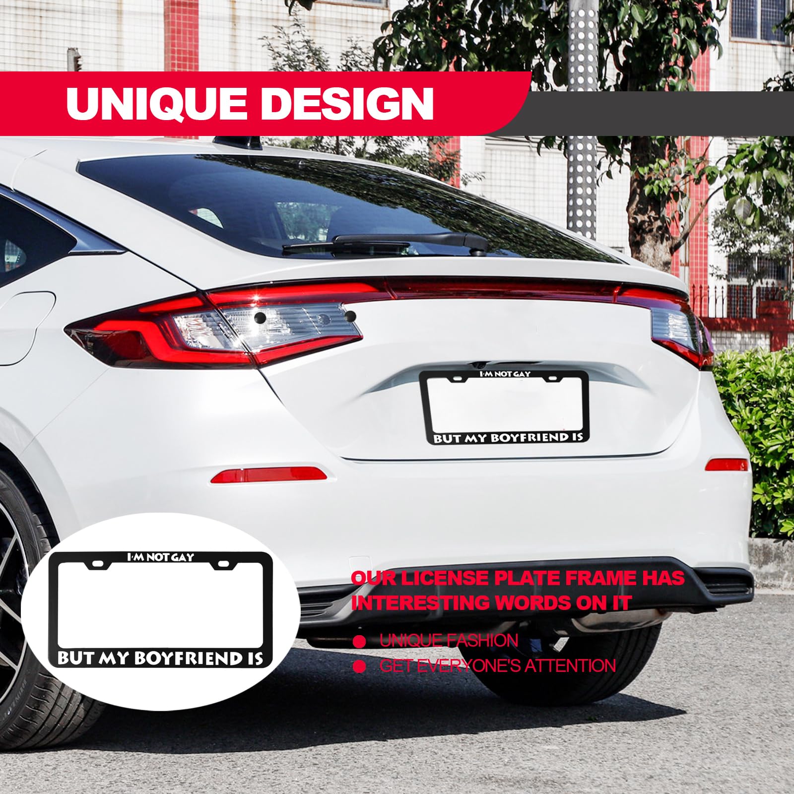 【UNIQUE DESIGN】Our license plate frame is unique and stylish with interesting text, which will make your car more eye-catching!