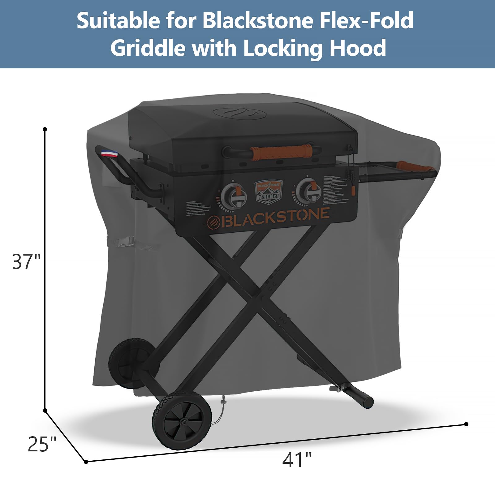 Custom Fit Dimension: 41x25x37 in / 104x 64x 94 cm, special for Blackstone 2350 On-the-Go 22” Omnivore Flex-Fold Griddle with Locking Hood but can also be applied to other products of the same size, such as tables, pizza tables, potted plant tables, etc. Please confirm the measurements before purchasing