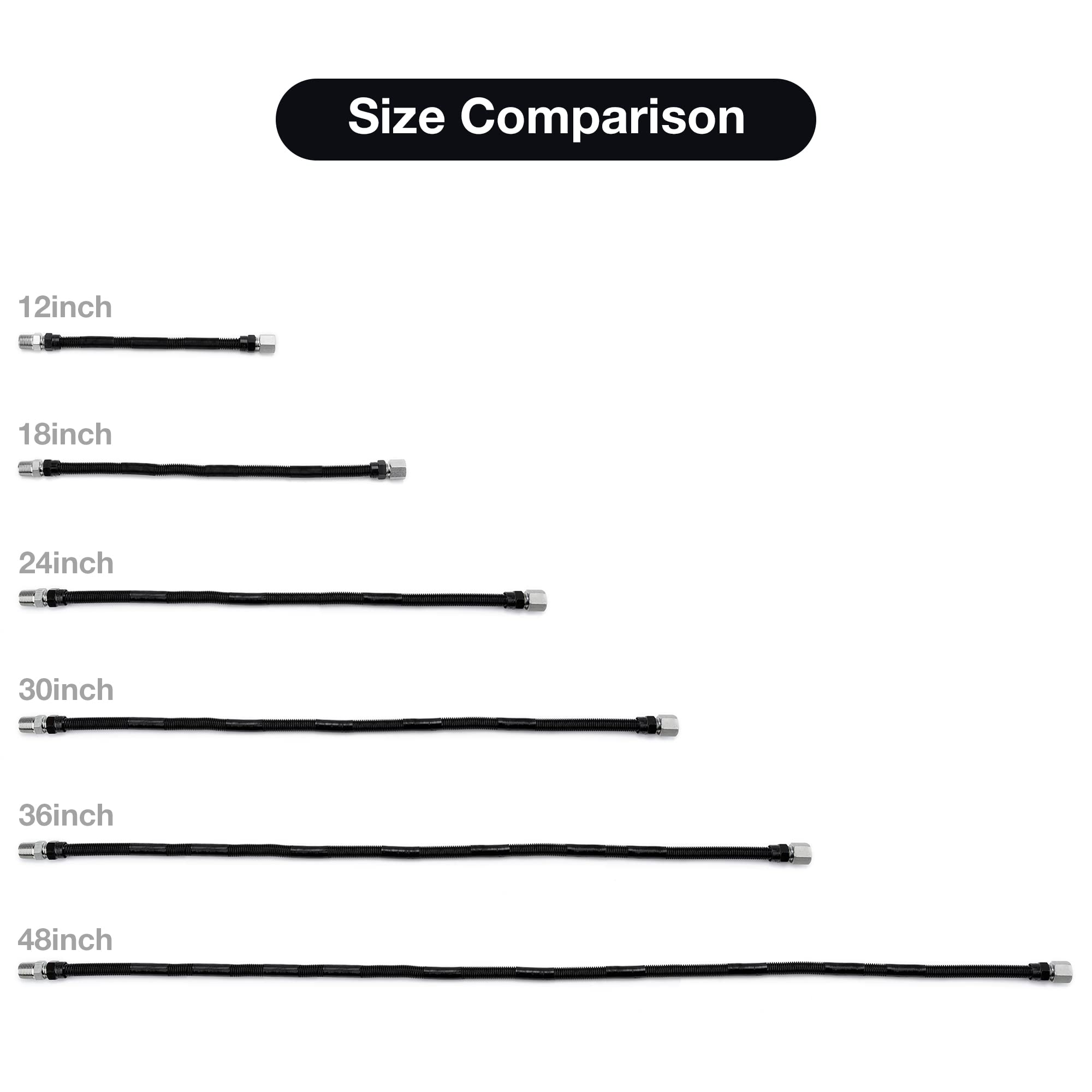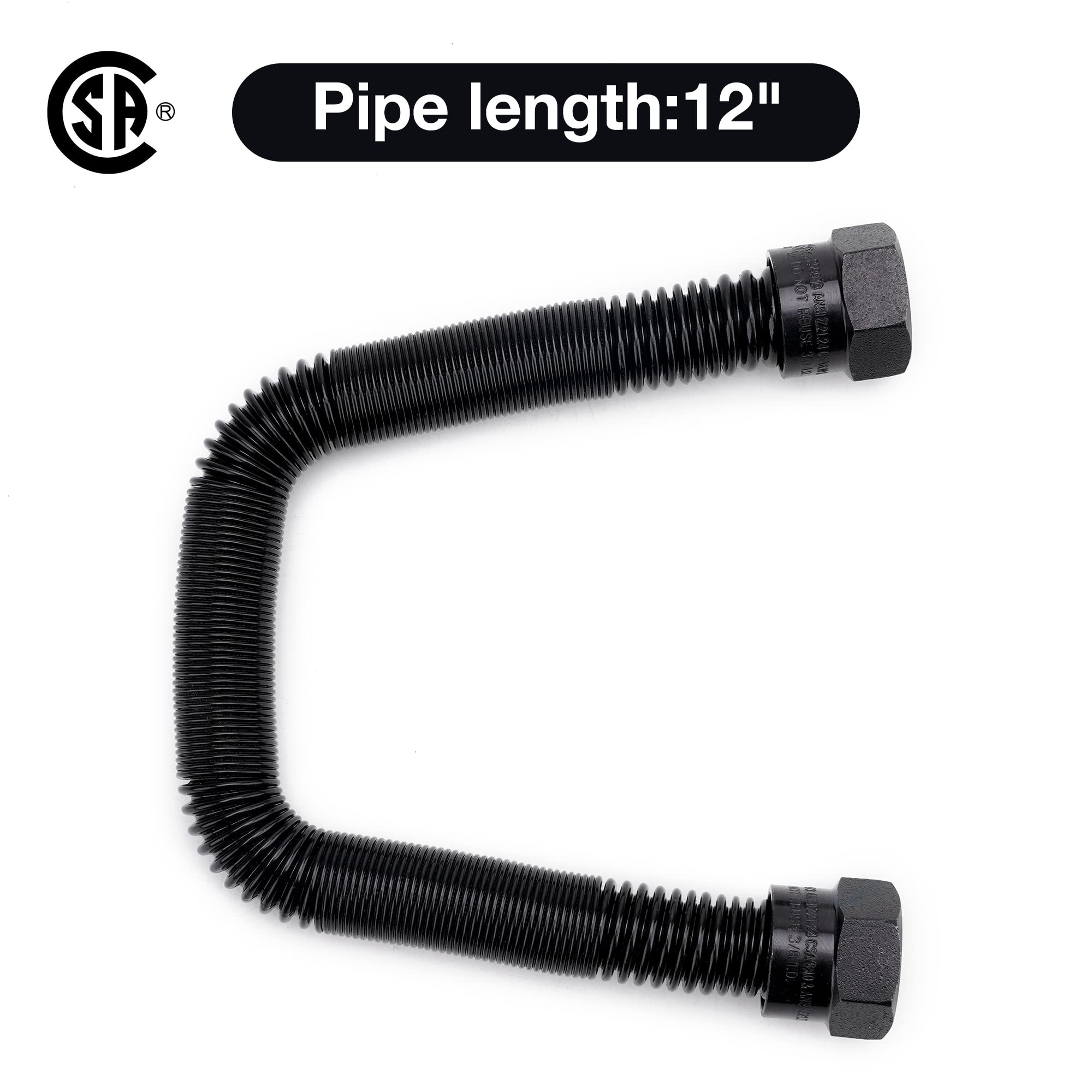 1/2" OD x 3/8" ID 12 inches gas line, stainless steel pipe in black coating with fittings