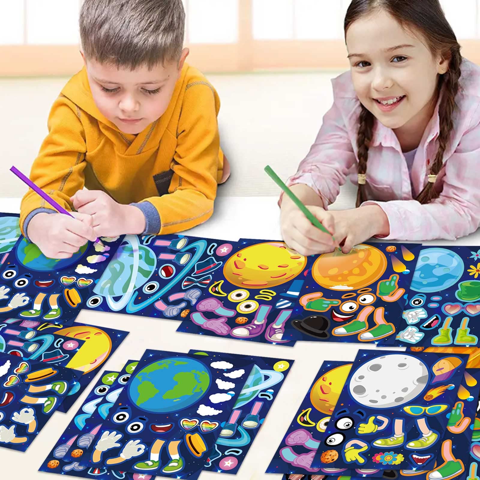 🪐Solar System Stickers Best Gift for Kids:These lovely universe galaxy sticker sheets are kids daily fun sticker game toys for children party favors and birthday party supplies. Space Theme make a face stickers are suitable for children's birthday party, classroom party, theme party, Easter, Christmas gift, Thanksgiving gift,art works, or the usual rewards for children.