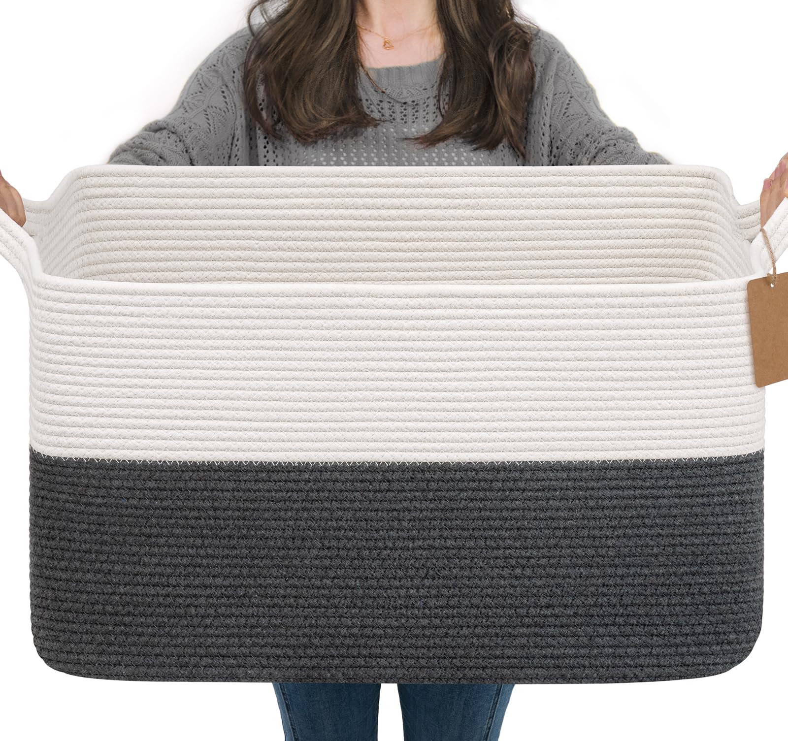 Soft Material. The decorative basket is made of cotton rope with a soft touch, which is perfect for home use, especially for toddlers, babies, children, and pets. It's a smart choice for organizing clothes, toys, stuffed animals, blankets, and even throwing pillows