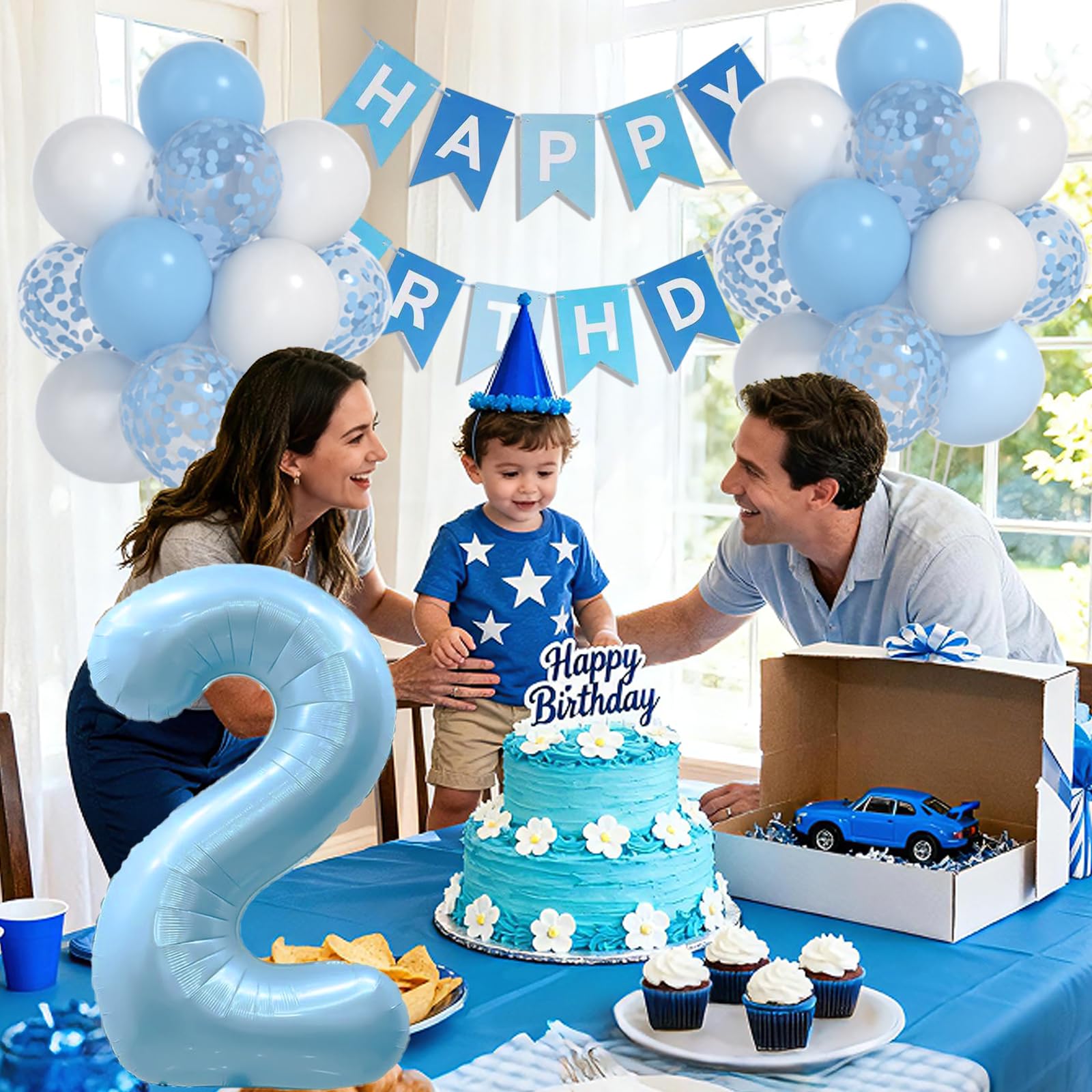 【PREMIUM MATERIAL】Blue 2nd birthday balloons are made of high-quality and Eco-Friendly natural foil and latex balloons, thick and durable.These blue white birthday balloons can be filled with air.