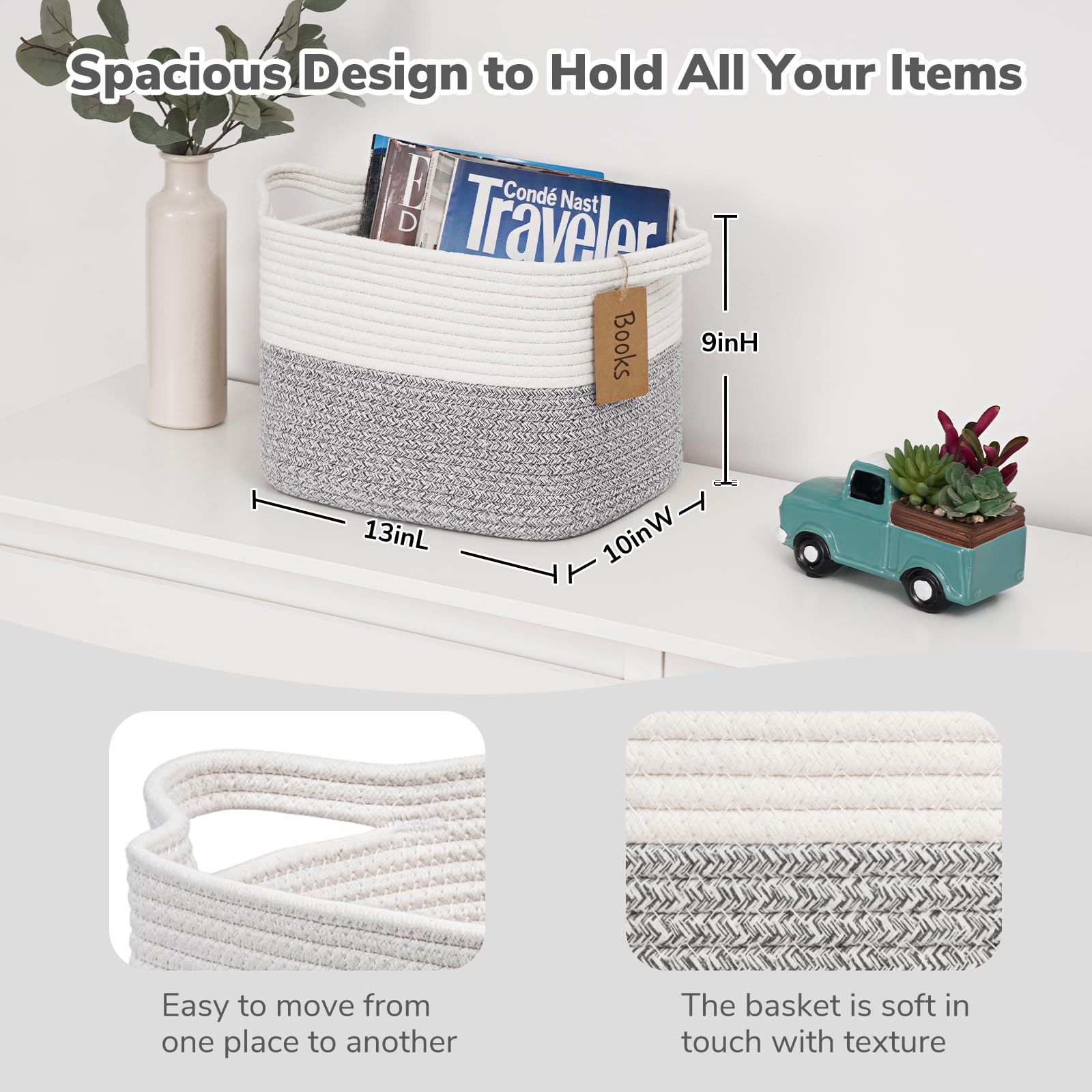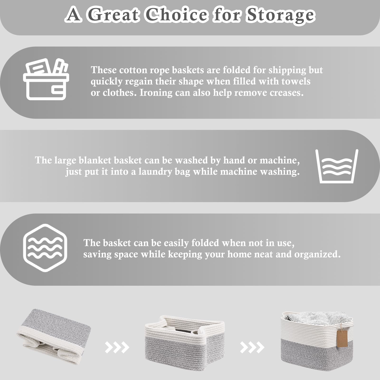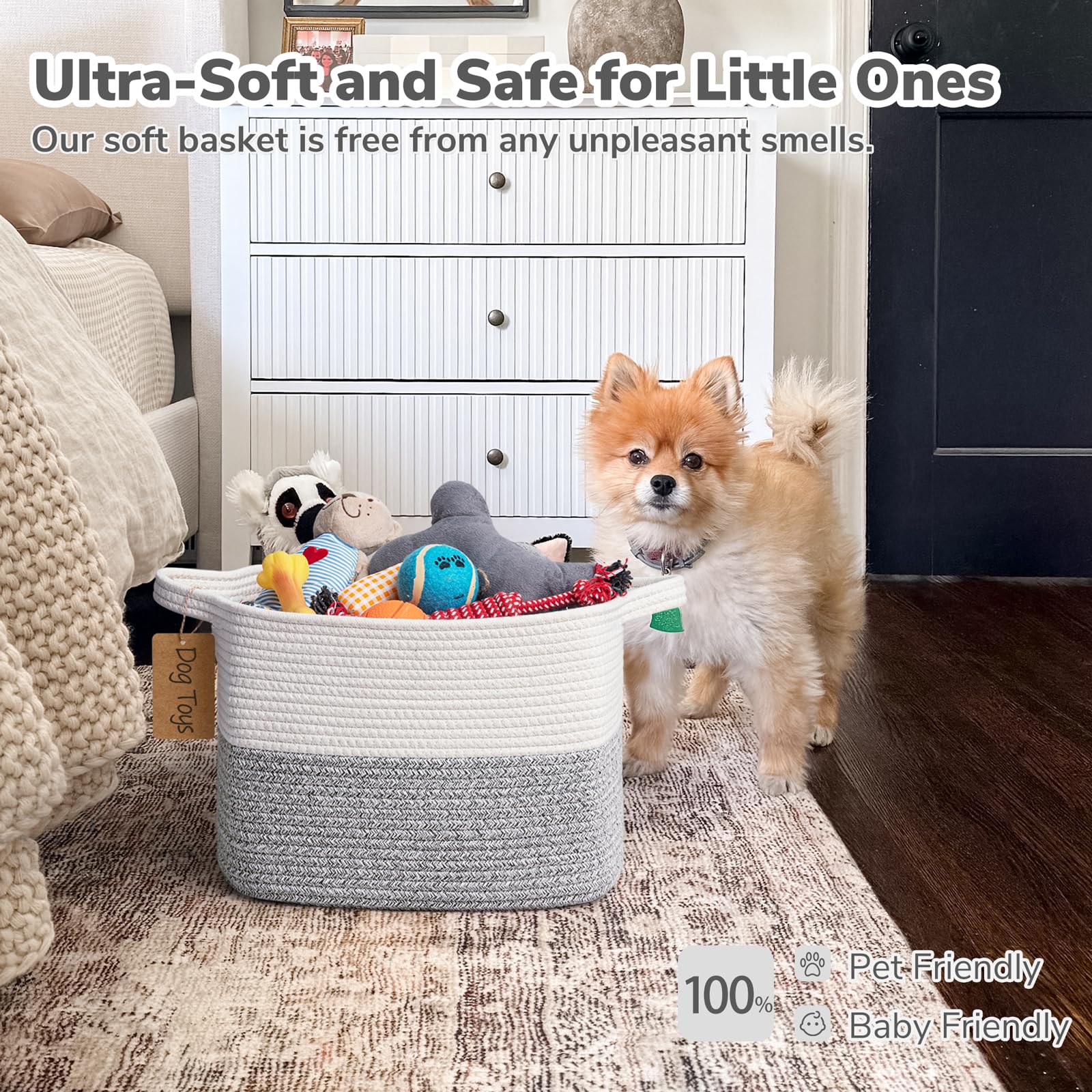 Soft Material. The decorative basket is made of cotton rope with a soft touch, which is perfect for home use, especially for toddlers, babies, children, and pets. It's a smart choice for organizing clothes, toys, stuffed animals, blankets mand even throwing pillows
