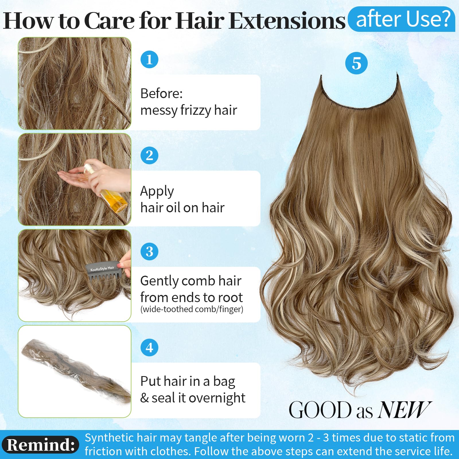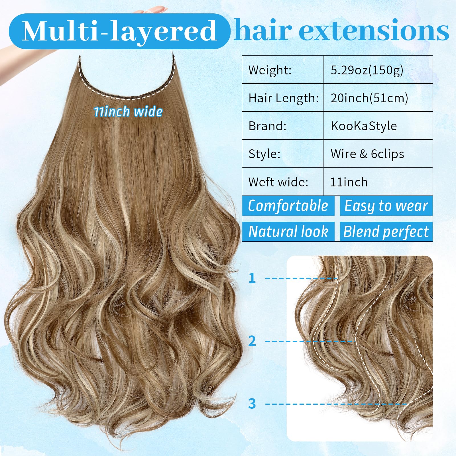 【Get Layered Hair In Seconds】 Invisible wire hair extensions is the easiest and quickest tool for adding volume and length. Anyone can do it!KooKaStyle invisible wire hair extensions with new upgrade!Thinner&softer&Breathable double weft,lighter&fluffier Synthetic heat-resisting fiber,Make it perfectly blend with our hair and create a hair salon effect at home.