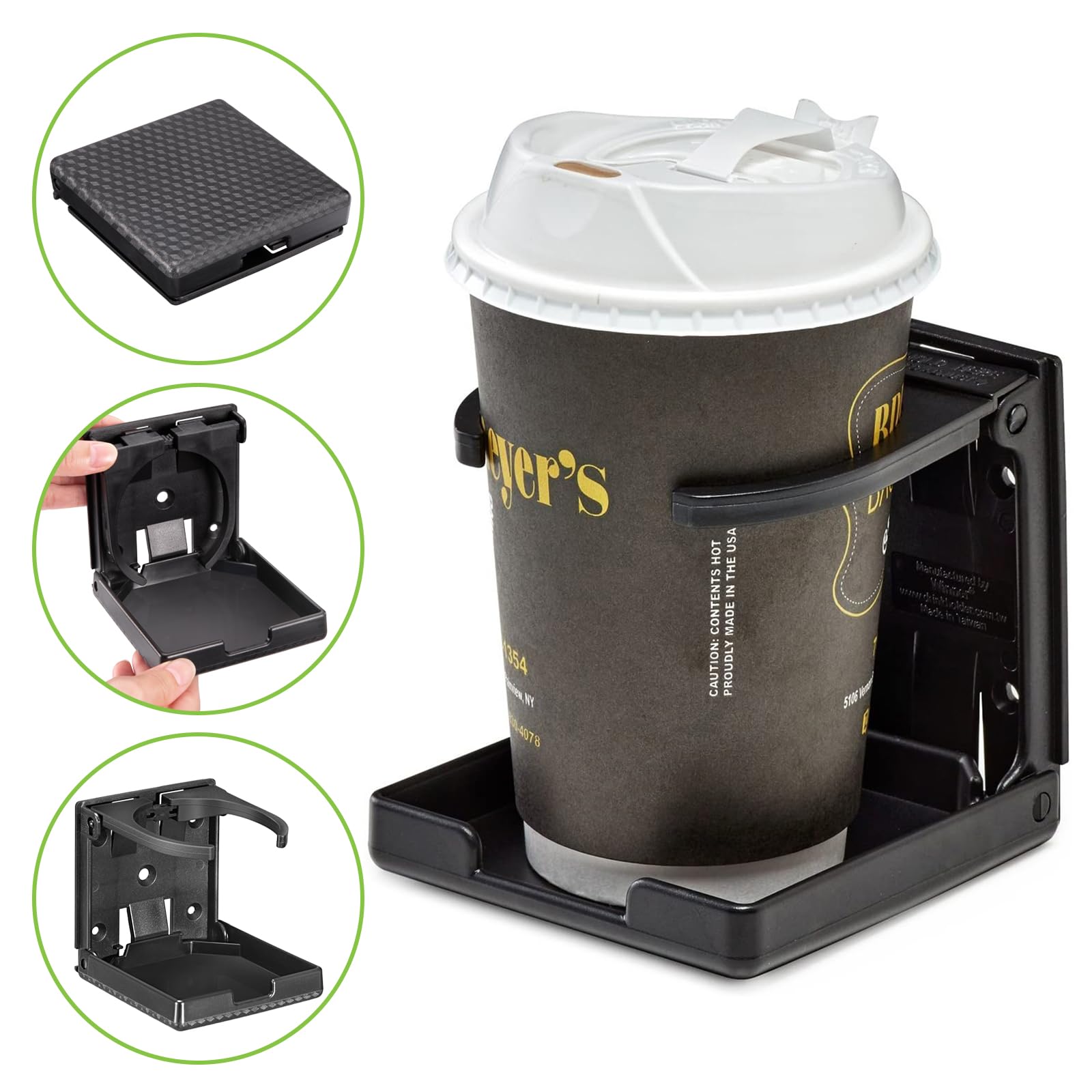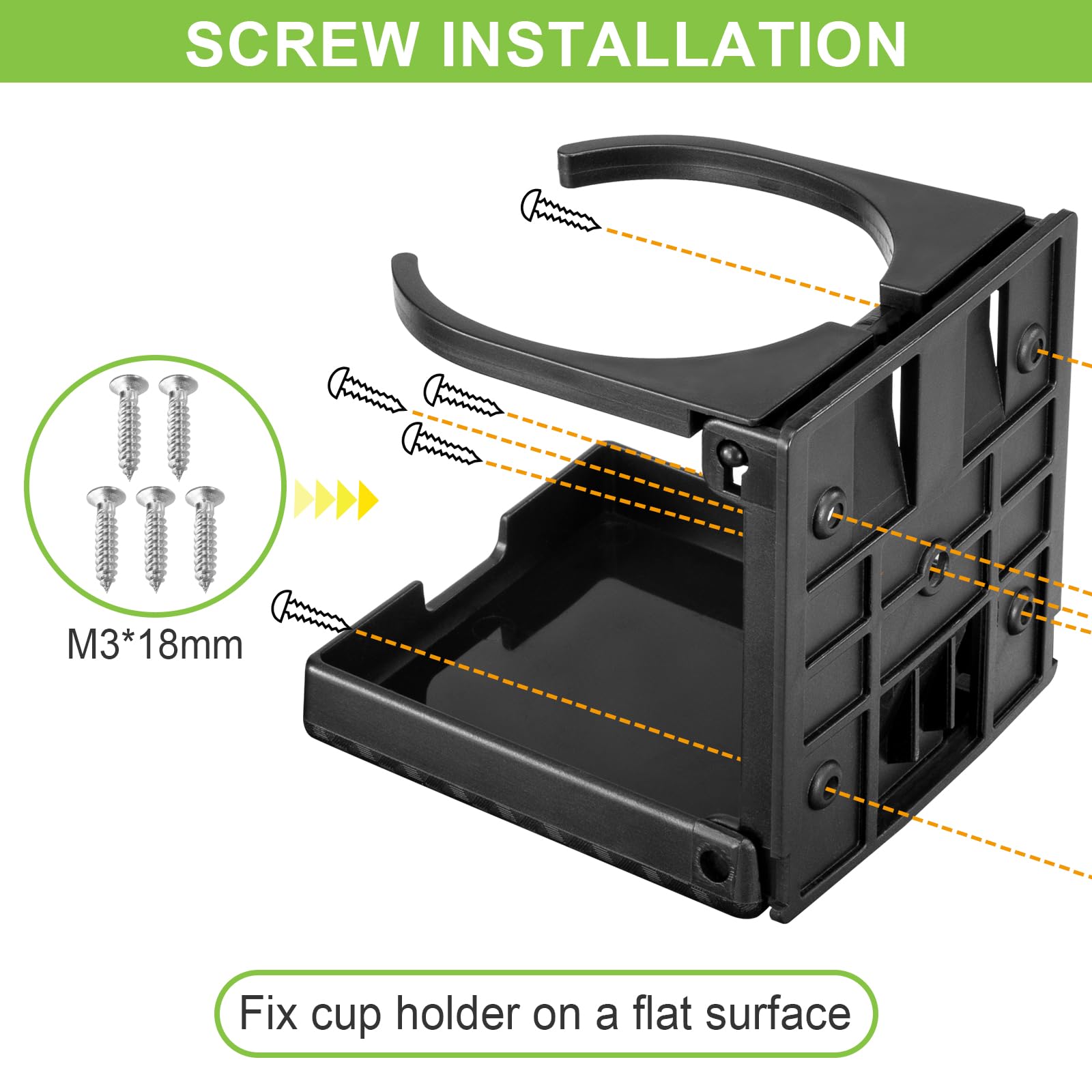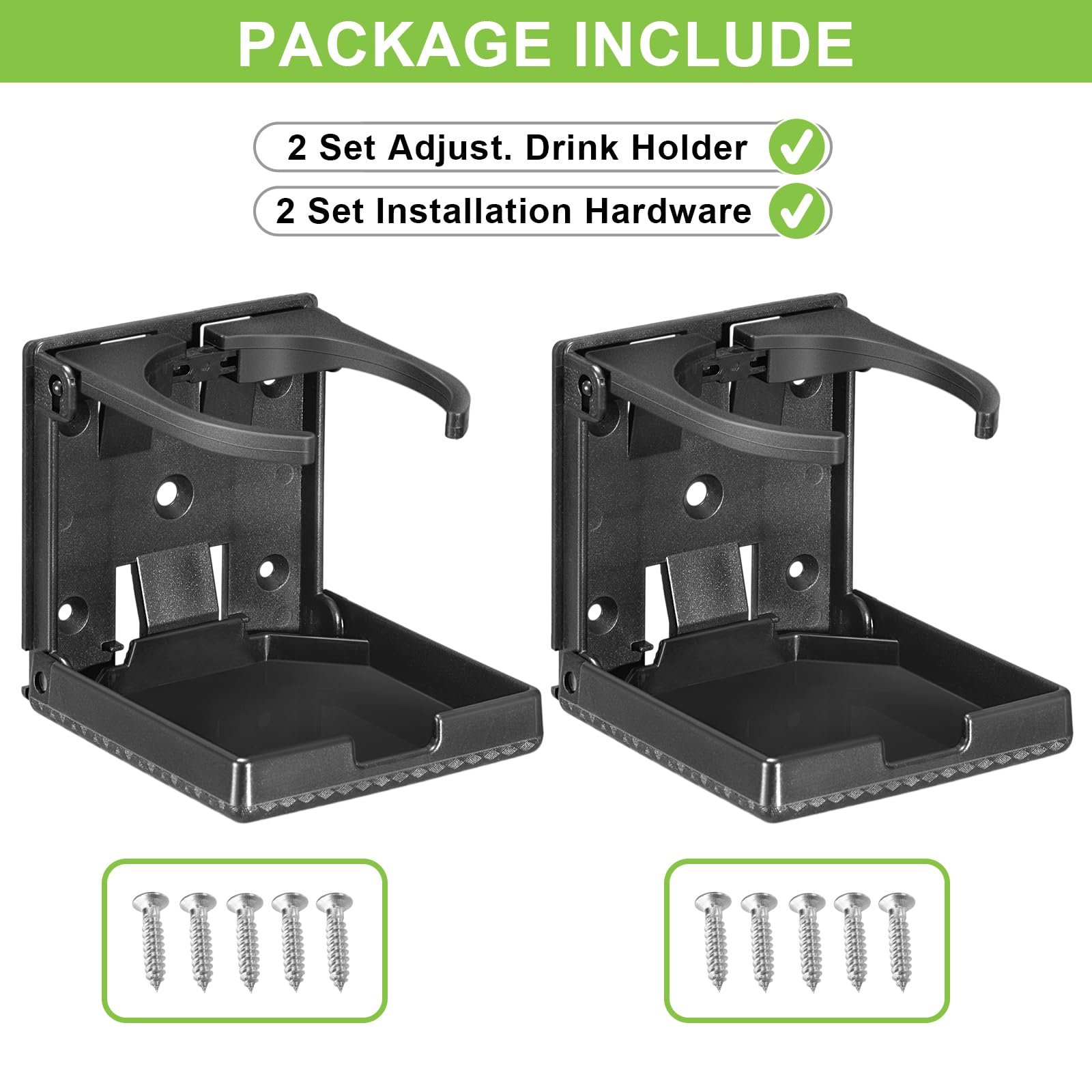 Folding Cup Holder range - Adjustable retainer arms designed to hold your various-sized drinks (cups, cans, bottles, glasses, etc.) max. 3.94 inch(100mm) in diameter ( include 2pcs car cup holder incl. mounting hardware )