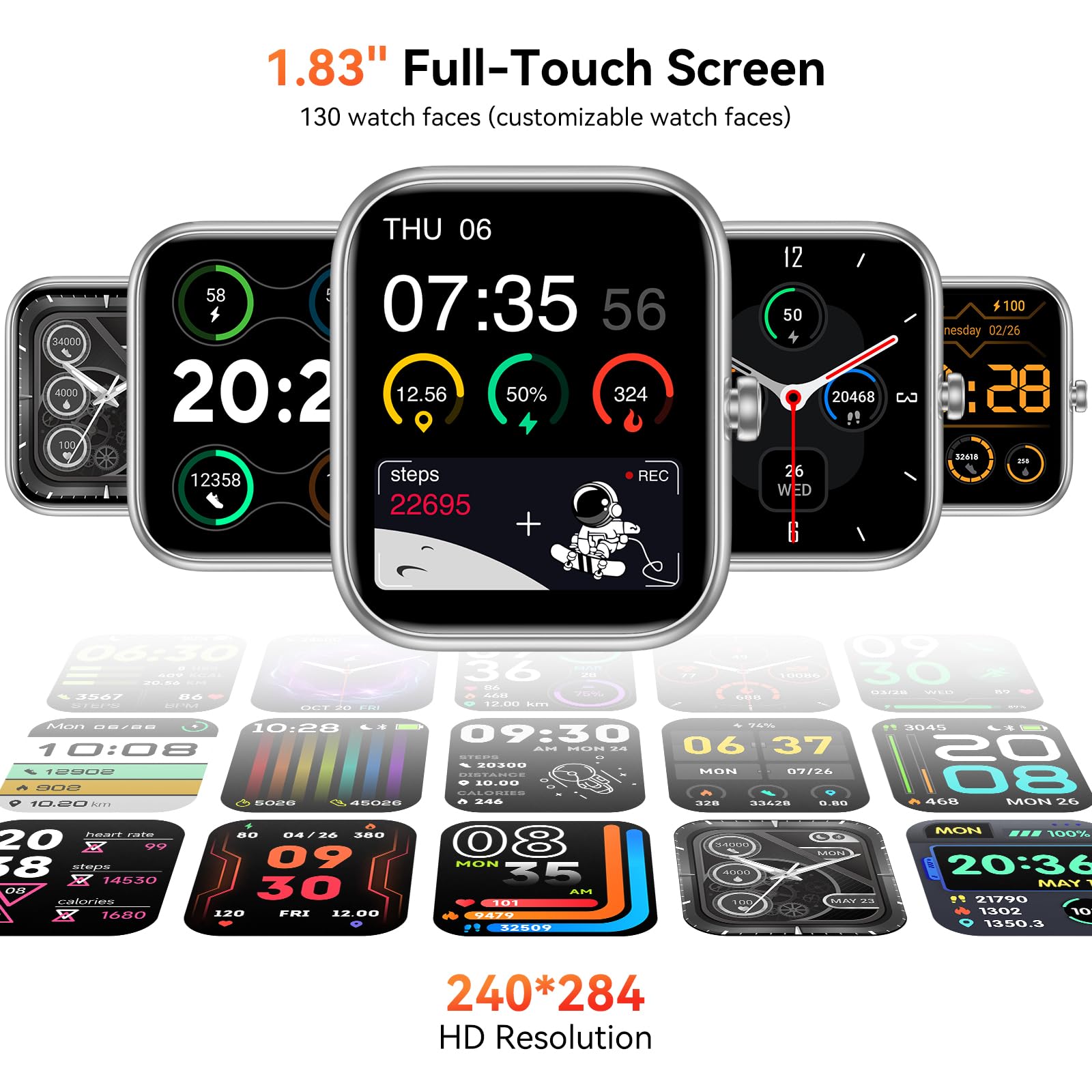 1.83 Screen & Customization: Fitness tracking watch boasts an ultra-large HD touchscreen with vivid colors and sharp sunlight visibility, plus customizable watch faces for personalized style