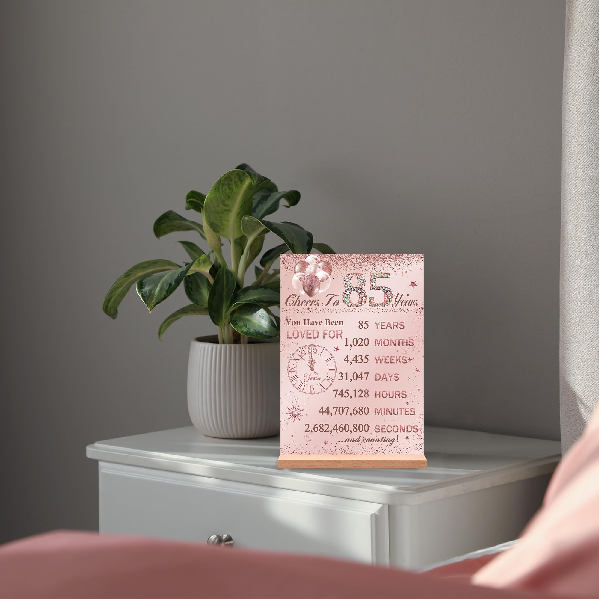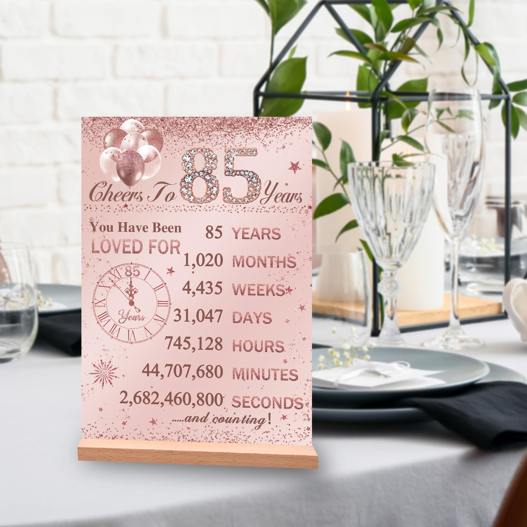 High-Quality Material: This 85th birthday sign with a wooden stand is sturdy and durable, made of quality acrylic and wood. Beautiful printing and is waterproof.