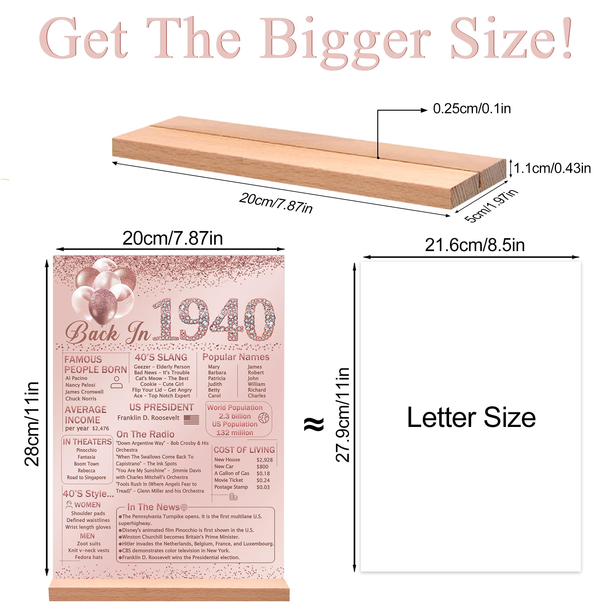 Package Included: You will get a back in 1940 acrylic sign with a wooden stand. It is easy to assemble and a practical display tool for neatness. Suitable to meet your 85th birthday party's needs.