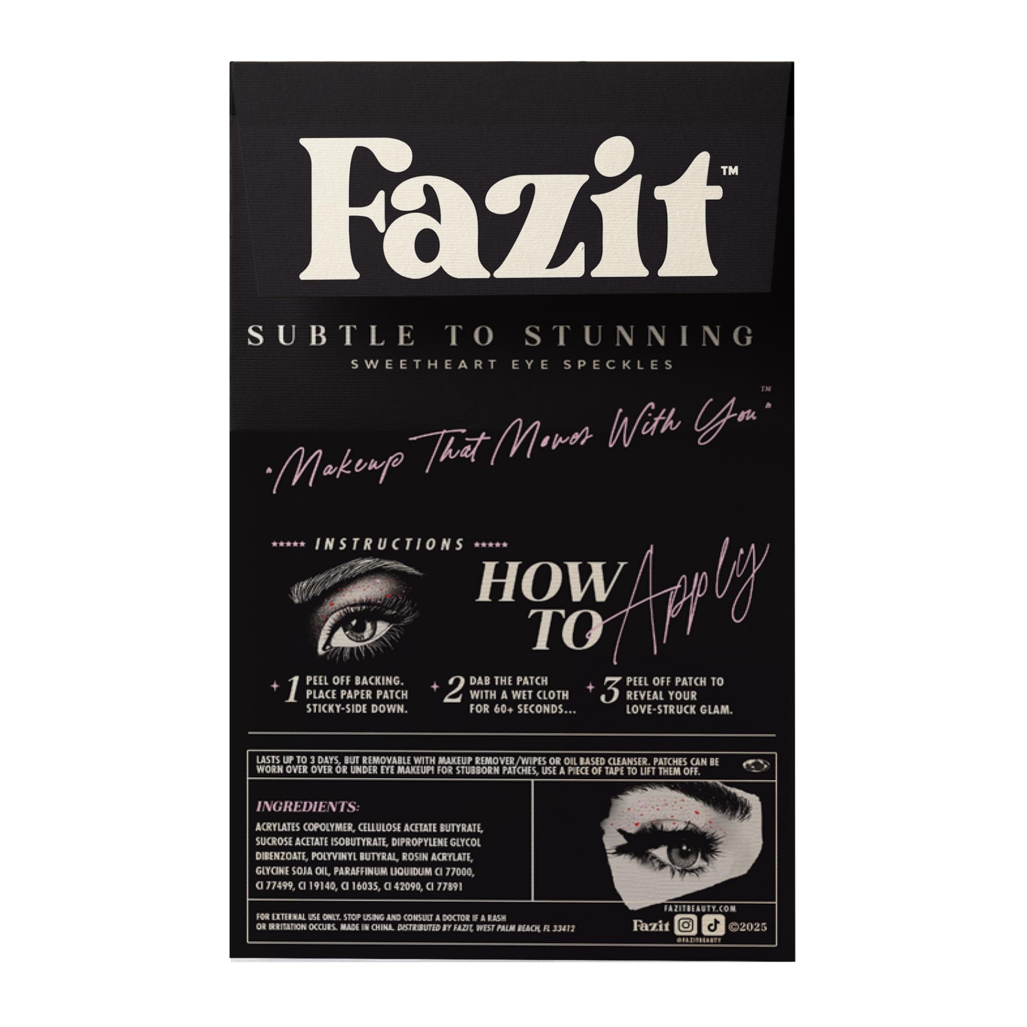 EASY APPLICATION - Applying our water resistant sweetheart eye speckle patches is a breeze! First, peel off the backing and place the sticky patch on your skin. Then, wet a towel and dab the patch for 60 seconds. Finally, peel off the patch to reveal your glamorous new speckles. It's that simple – no mess, no fuss, just beautiful, natural-looking speckles in minutes. Perfect for anyone looking to add a touch of charm to their look with minimal effort!