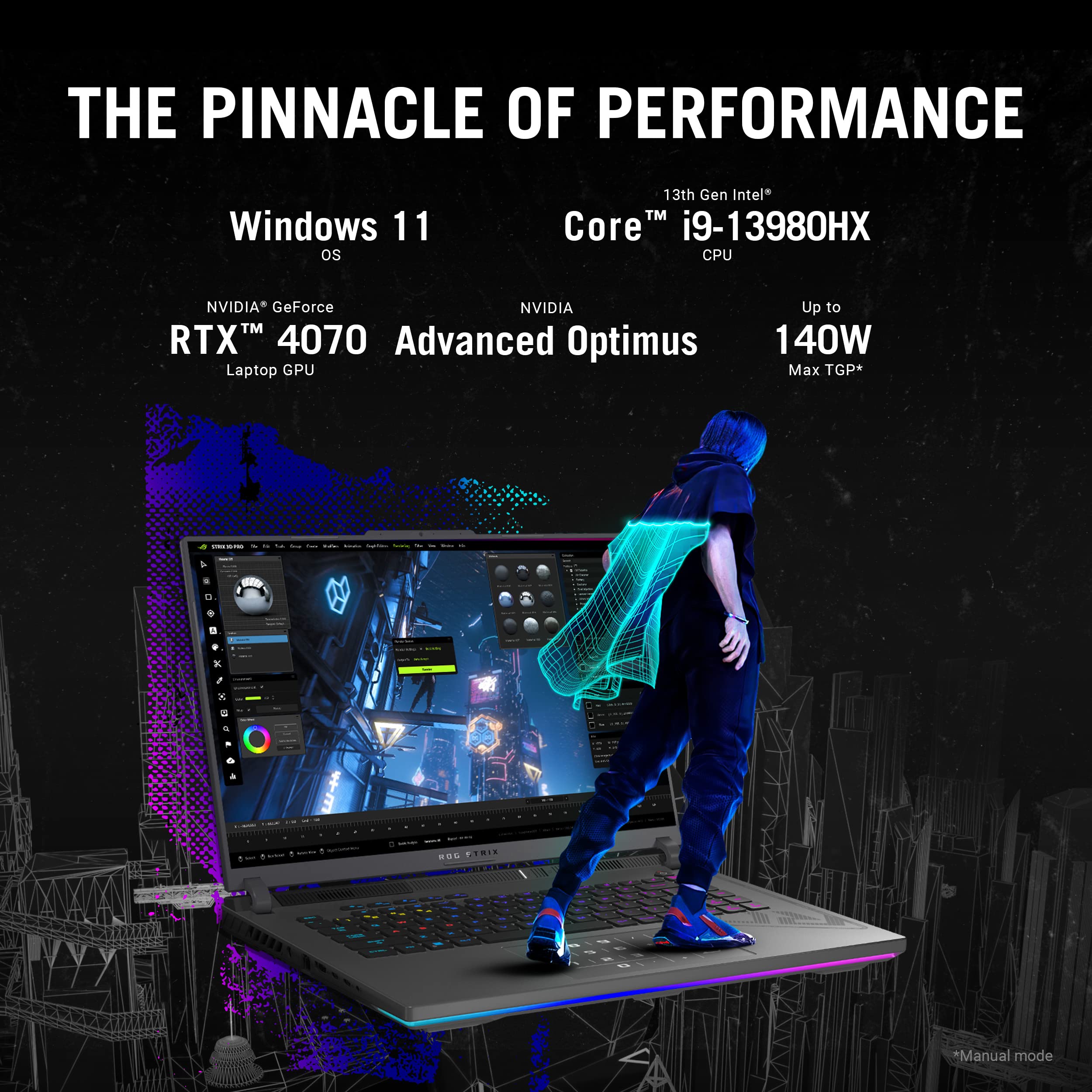 POWER UP YOUR PLAY - Draw more frames and win more games with Windows 11, a 13th Gen Intel Core i9-13980HX processor, and an NVIDIA GeForce RTX 4070 Laptop GPU at 140W Max TGP.