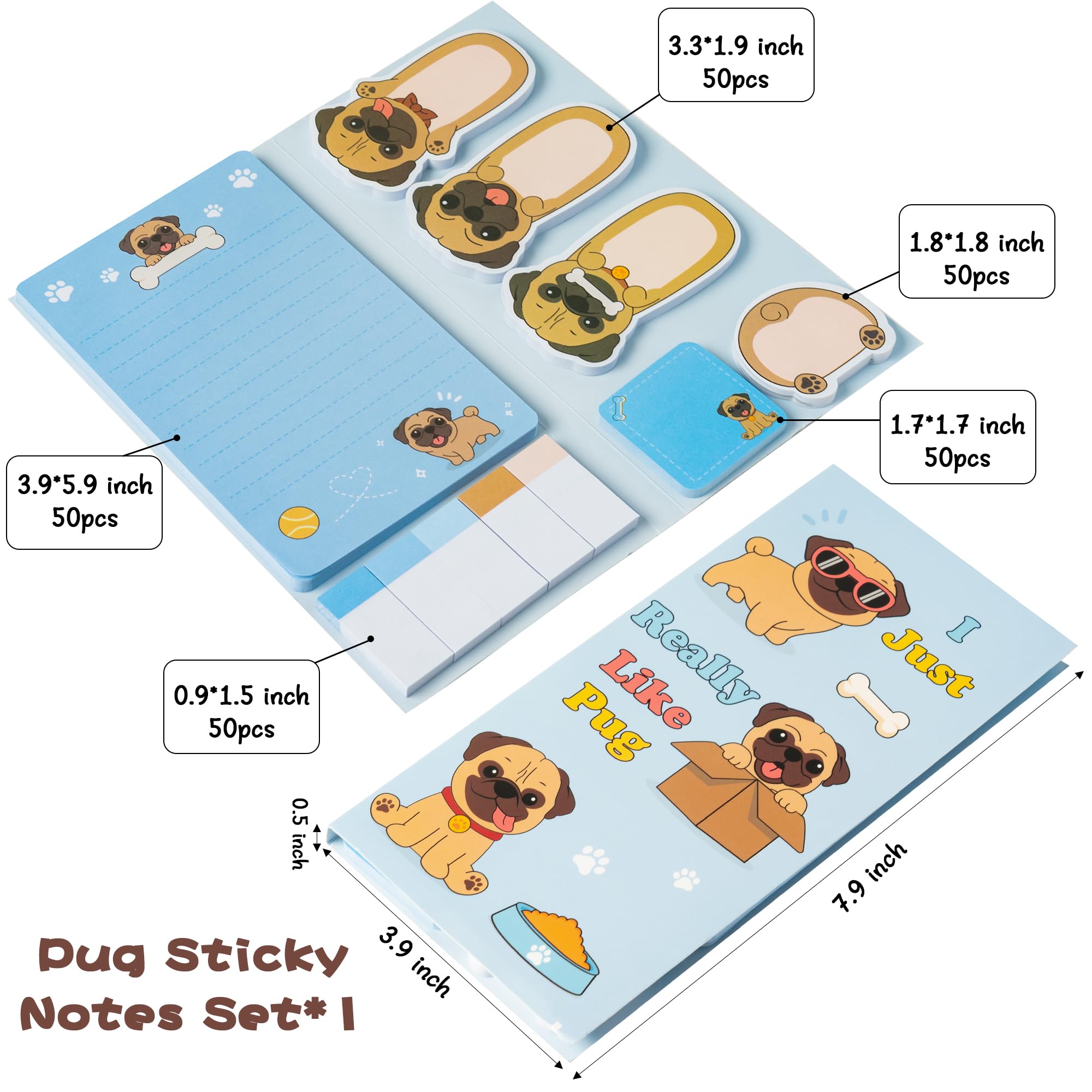 Pug Sticky Notes Set: You will get a set of pug sticky notes, there are many self-adhesive note pads in different styles and sizes. This set of sticky notes with perfect size, which is easy to carry and fit in your bag. 50 sheets per pad, 550 sheets in total. Meet your various needs