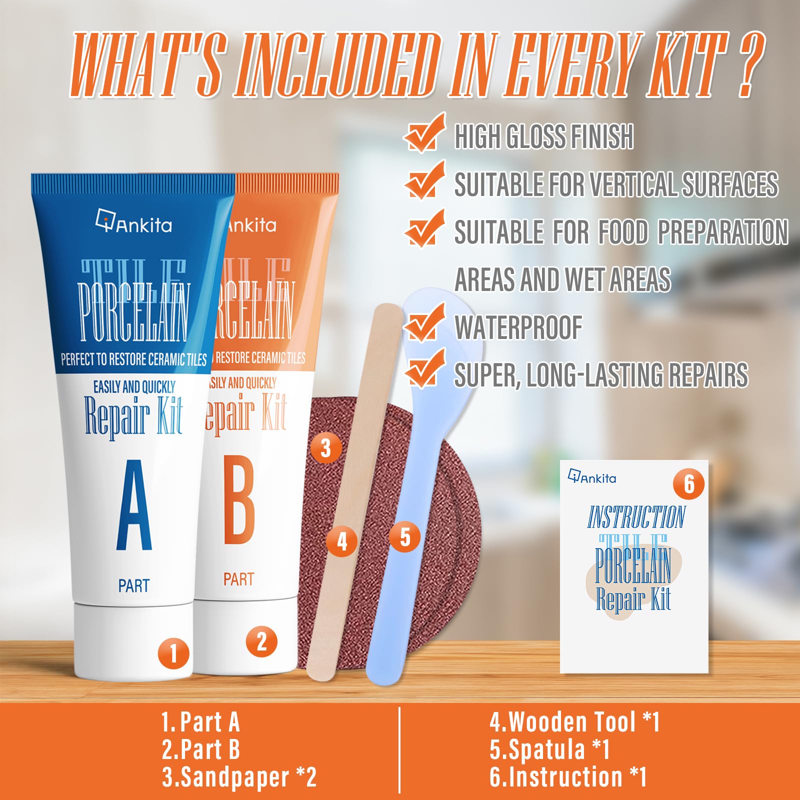 High Bond Strength: Ankita porcelain chip repair kit contains new upgrade formula, Yielding high bond strengths, so it can repair almost any tubs, sinks, tiles and toilets with any degree of damage. Note:After applying the mixture, please remember to wipe excess before drying, its high bond strength makes it difficult to remove after drying