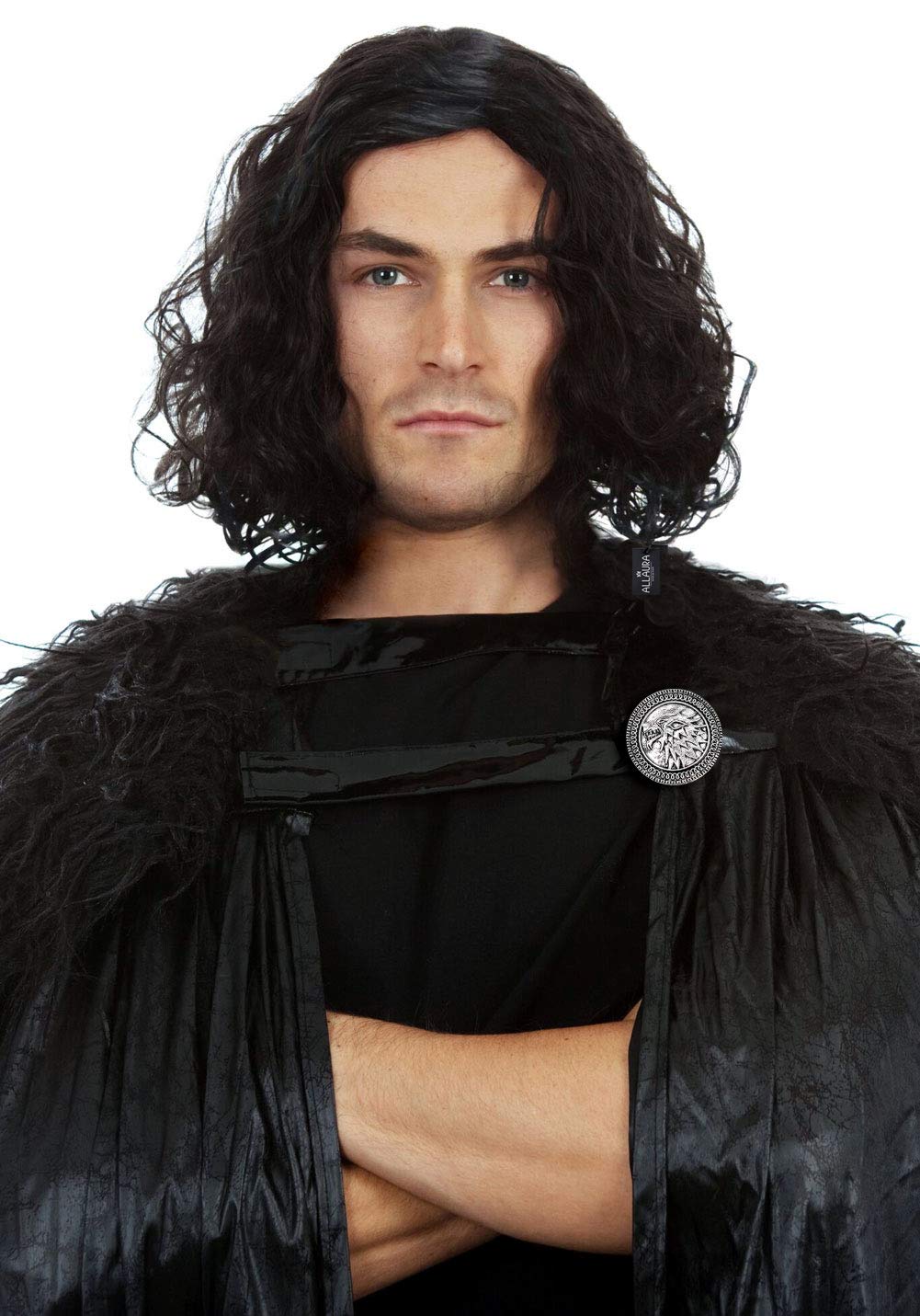 MENS COSPLAY BLACK WIG: THE wig to complete your Snow King Costume, especially with the FREE Stark Shield pin included! Also short wavy wig for a rockstar too, Jim Morrison or Eddie Vedder perhaps?