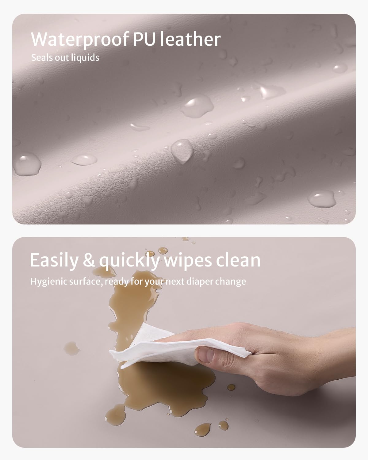 Waterproof & Wipe-clean - Unavoidable mess and frequent laundry? Oh, no worries! Our contoured changing pad features a waterproof PU surface that wipes clean in seconds, ensuring a fresh and hygienic surface for your next diaper change. Fewer cover changes and less laundry make parenting easier