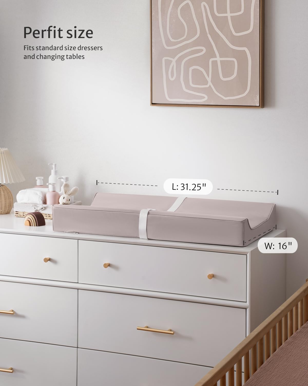 Perfect Size - The baby changing pad size at 31.25"L * 16"W * 4.25"H, fits all standard changing tables and most dressers. With lightweight styling, it's convenient for on-the-go traveling, daycare and more