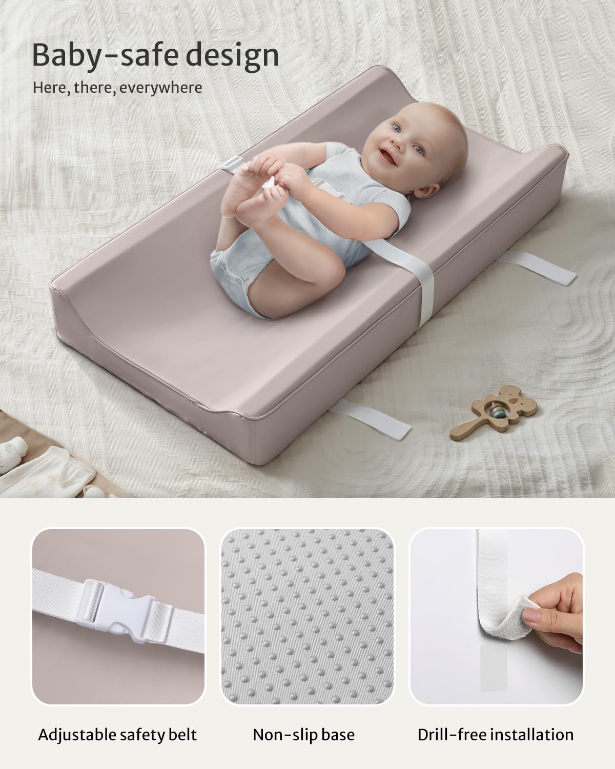 Comfy Design - Featuring a soft, safe PU leather cover and supportive foam padding, our changing pad creates a cozy space for your little angel, turning diaper changes into blissful bonding moments for both babies and parents