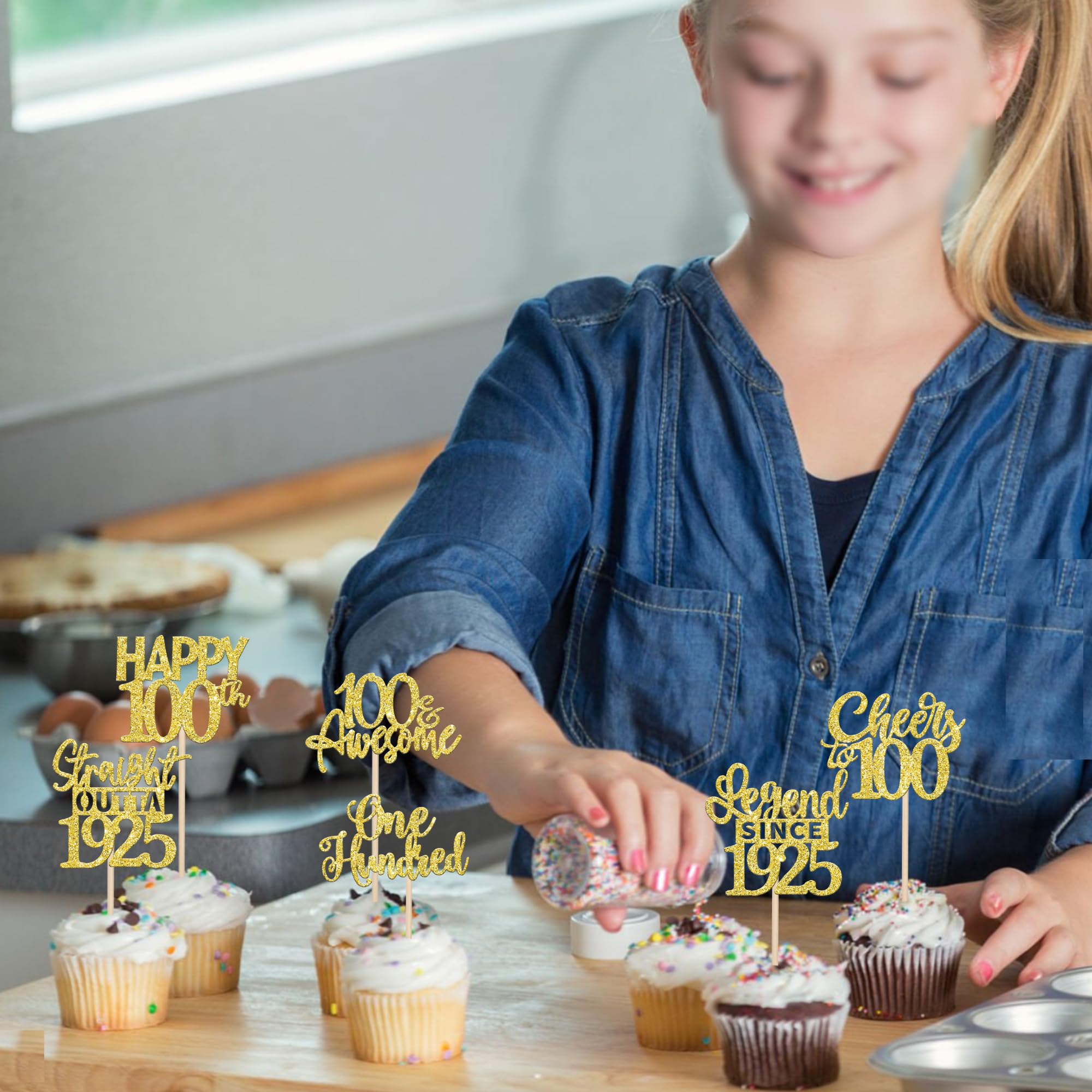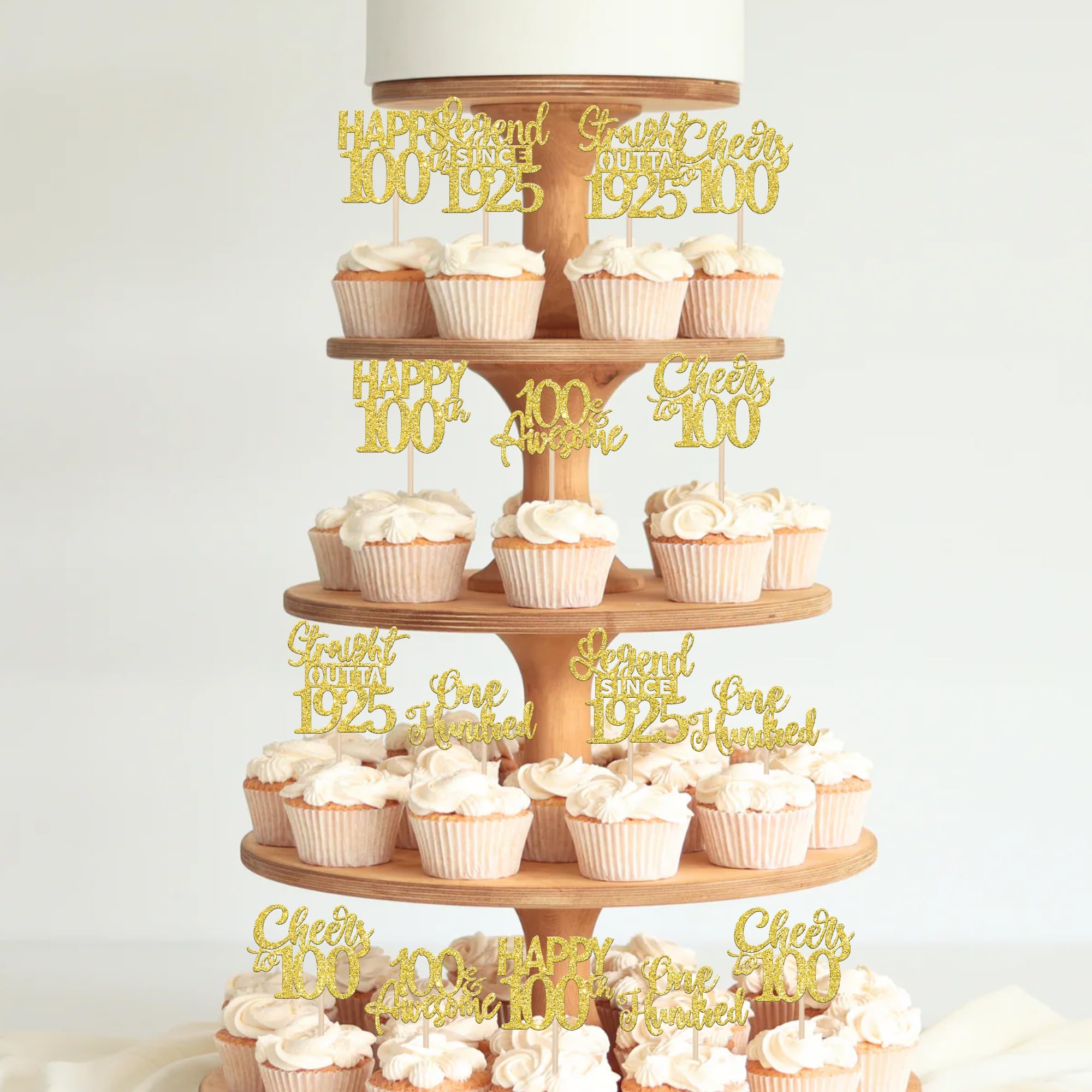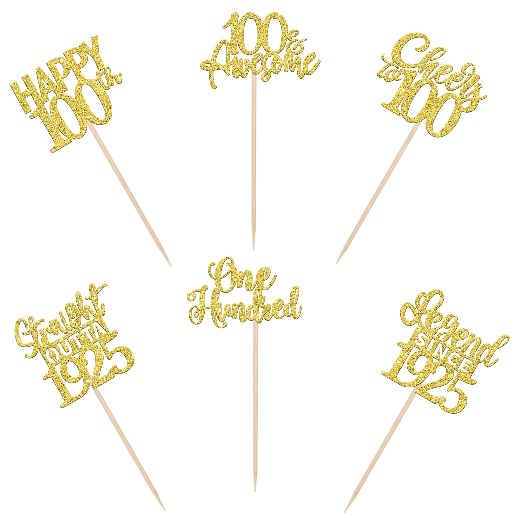 24PCS Happy 100th Birthday Cupcake Toppers One Hundred Straight Outta 1925 Cupcake Picks Cheers to 100 Birthday Decorations Lengend Since 1925 Cupcake Decorations for 100th Birthday Anniversary Party Cake Decorations Supplies Perfect for legend since 1925 theme party, 100th anniversary theme party,cheers to 100 years theme party, 100 awesome theme party cupcake decorations supplies. Pack of 24 pcs,4 pcs of each design. The size is 2.3*4.5/ 2.5*4.5/ 2.7*4.5/ 2.4*4.7/ 2.6*3.9/ 2.4*4.7 inch ( with stick ) Made of high quality paper card stock,thick and sturdy. These straight outta 1925 cupcake toppers are one side glitter, another side is white, and they are intended for decoration only, please do not put them in oven or microwave. If the item you received has any defects, please contact us immediately.we will deal with it within 24 hours.