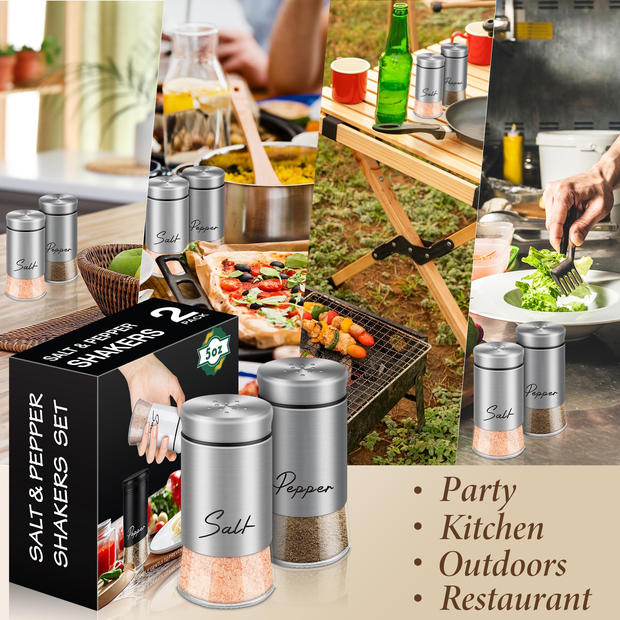 Farmhouse Design:This salt and pepper shaker set comes in a Refillable Design for modern and farmhouse style kitchens, dining rooms and tables. The glass bodies are clearly marked with "Salt" and "Pepper," making it easy to tell them apart