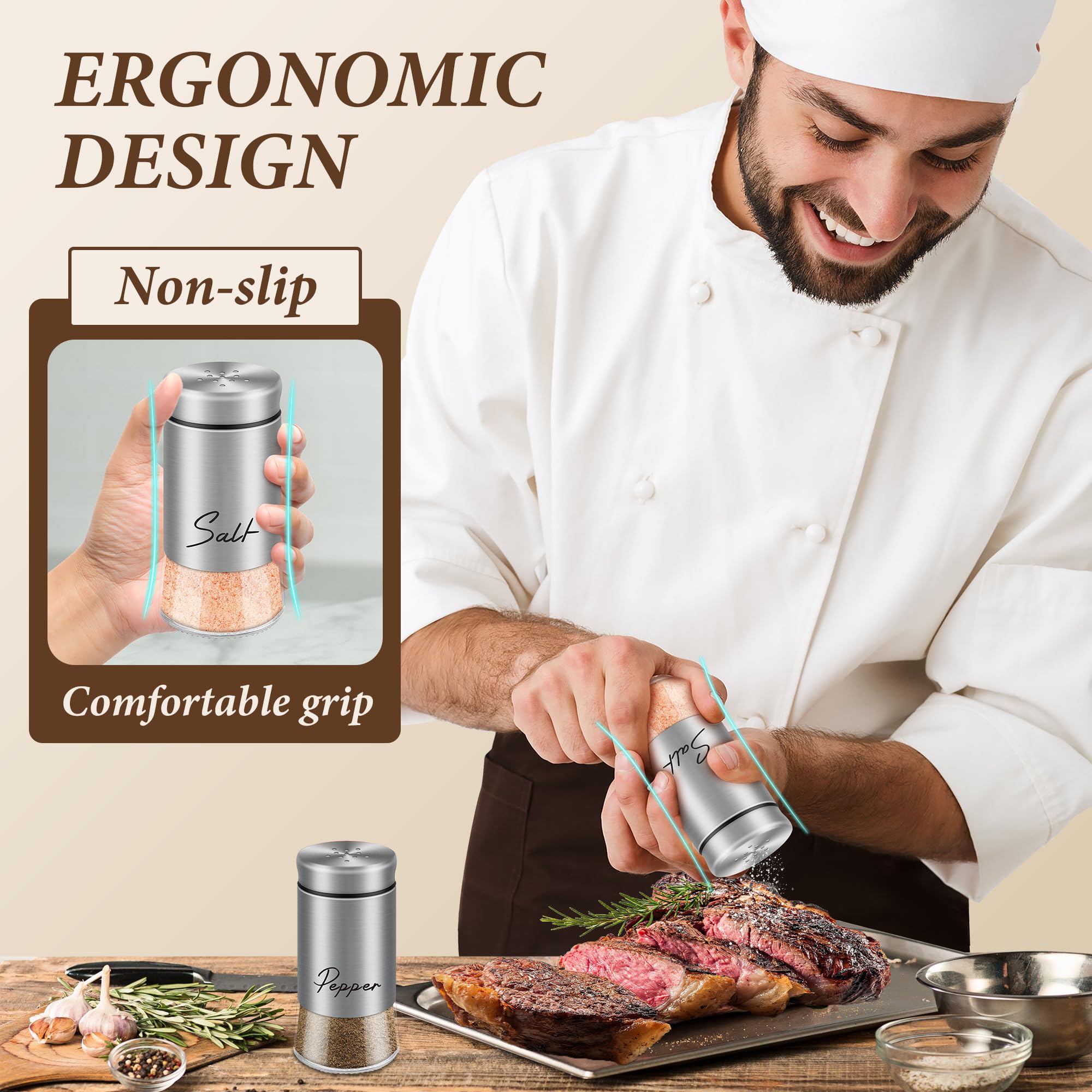No Over-Seasoning: These salt shakers have 11 well-designed openings that work perfectly for salt and pepper. Say goodbye to clumps or uneven seasoning – these shakers dispense granules smoothly, enhancing your dishes' flavors