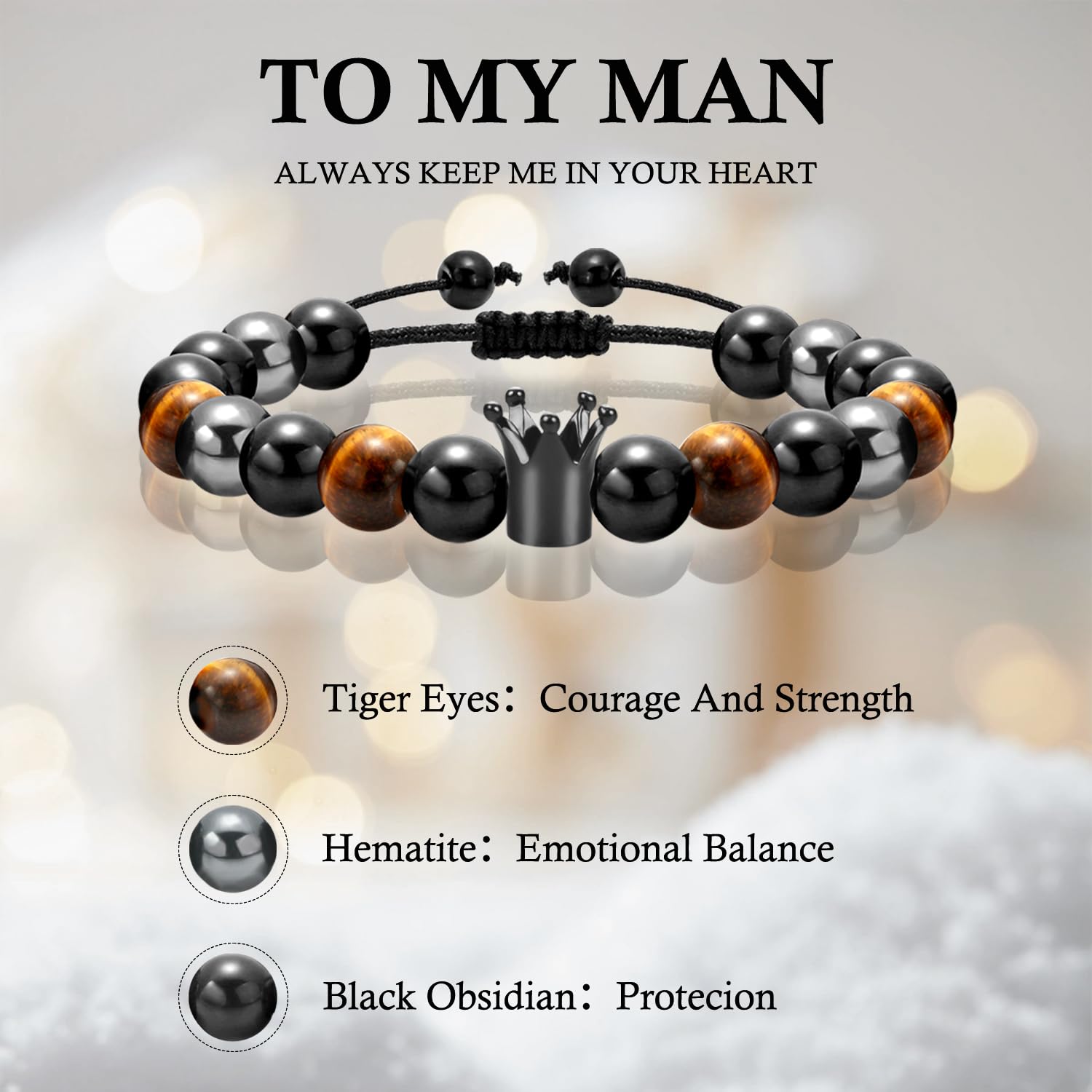 Mens Gifts: Show your affection with timeless men gifts that resonates with love. The crown in the center represents "you are my king", wear this mens bracelet and always remember that I love you more than you can imagine! To My Man bracelet embodies heartfelt sentiments, ensuring your partner carries your love wherever he goes. I Love You, Forever and Always.