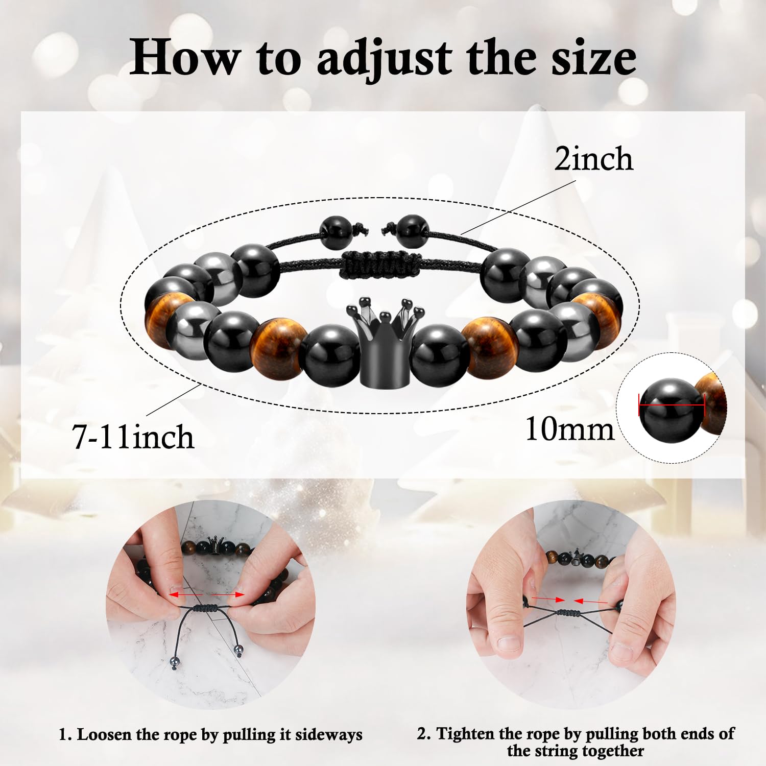 High Quality Material: Crafted from 10mm natural tiger eye stone, hematite, black obsidian, and black crown, the To My Man Bracelet exudes elegance and durability. Our commitment to using nature derived, nickel free, and lead free ensures hypoallergenic, skin friendly beads suitable for daily wear and any occasion.