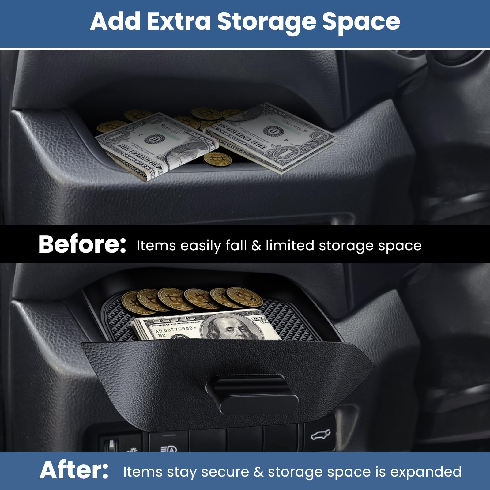 Adds Storage: This driver-side drawer box makes full use of unused space, allowing you to conveniently store small items like keys, coins, cash, maps, or watches. The built-in handle lets you easily pull out the drawer whenever needed.