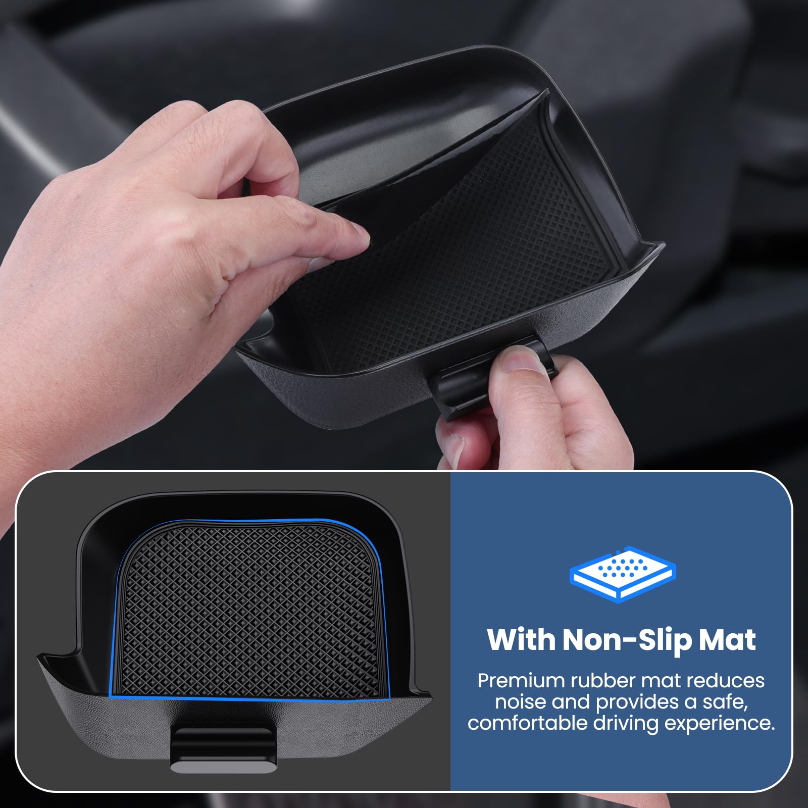 Anti-Slip Pad: ABS plastic Material is easy to clean and heavy duty so that you can use this center console organizer within years, Non-slip rubber mats prevent stuff from sliding around and scratching.