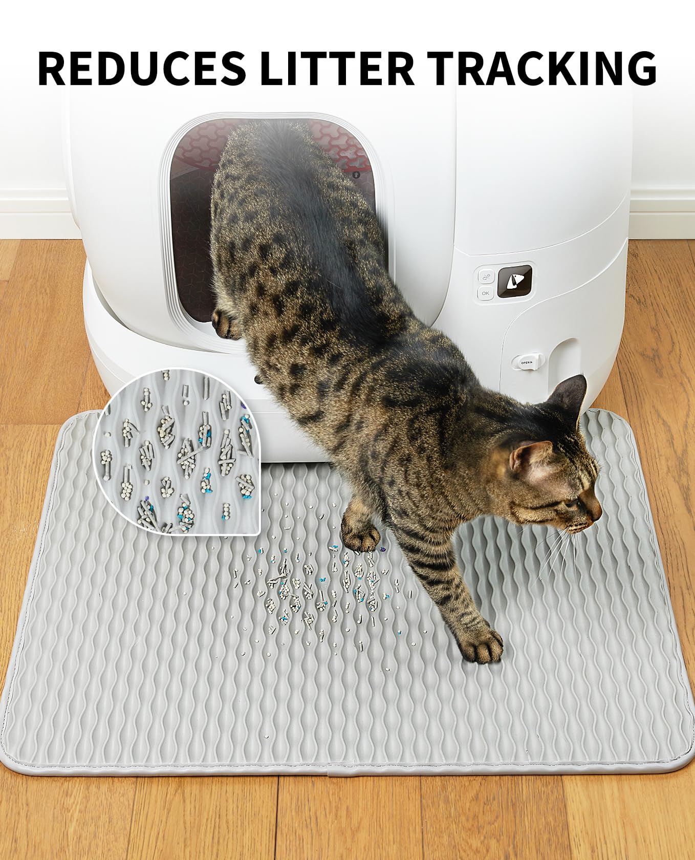 Reduces Litter Tracking: This cat litter mat with deep grooves effectively contains both large and small litter granules, keeping your floor mess-free.
