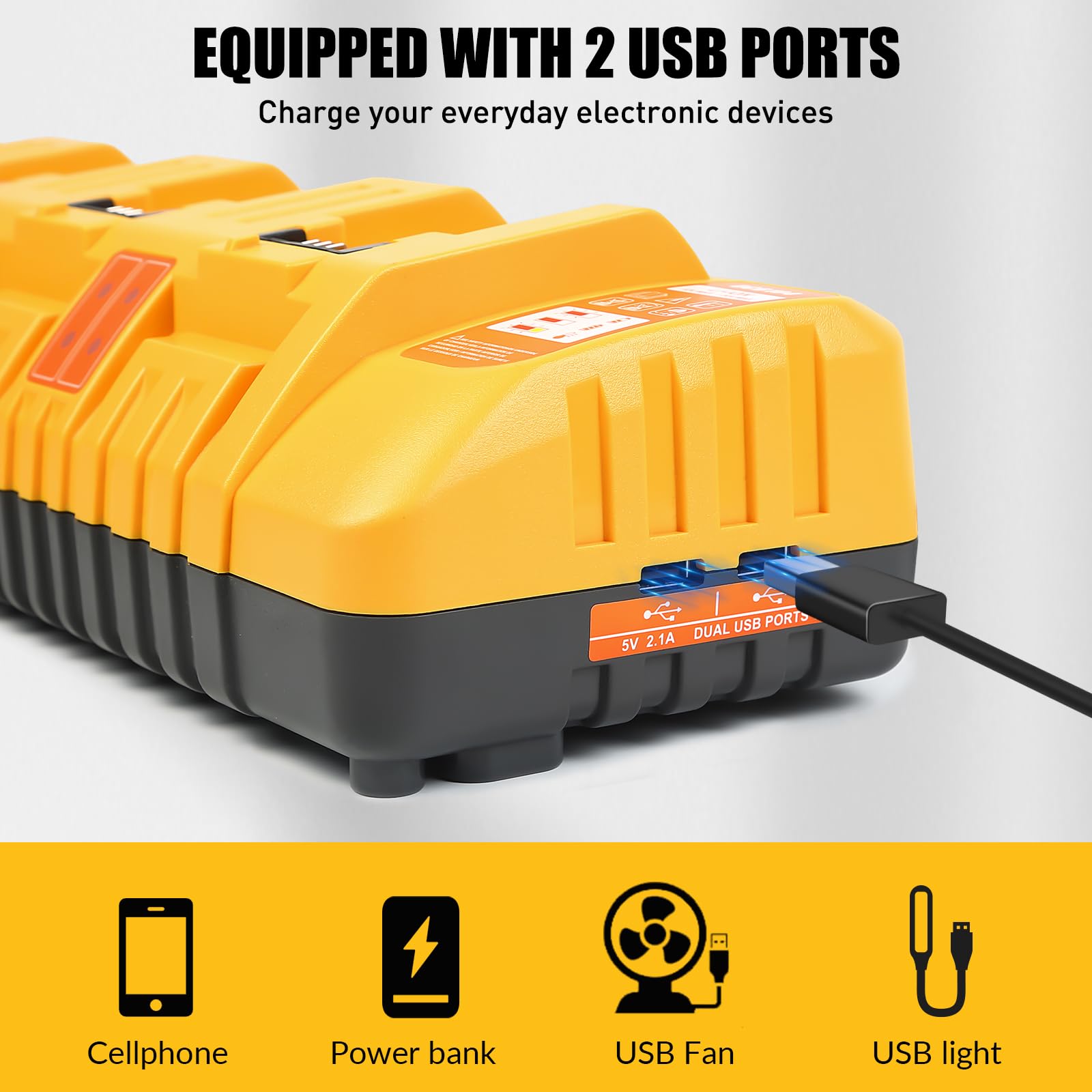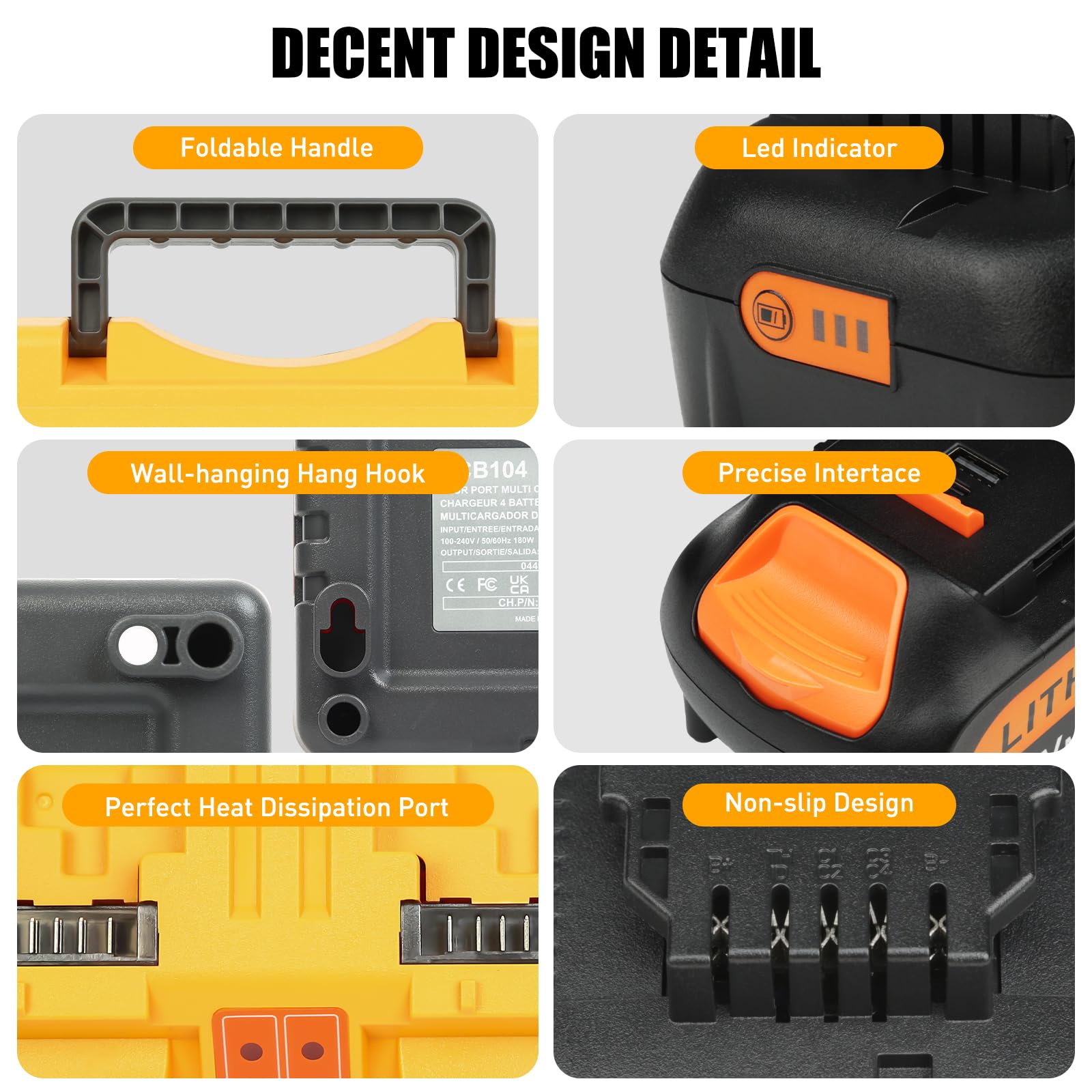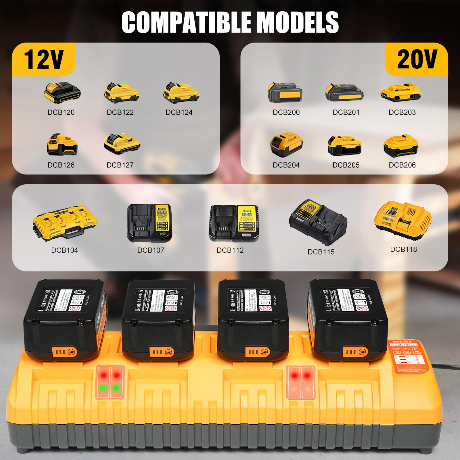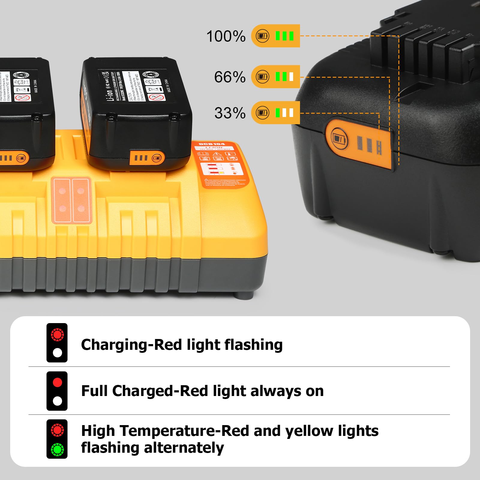 【Safety Protection】Replacement for dewalt battery charger station complies with security testing standards. The built-in intelligent protection system monitors each battery status and protects your batteries from unsafe problems caused by overcharging, overdischarging, overheating, overcurrent, overvoltage, short-circuit, etc., optimizing battery life and making it safer.
