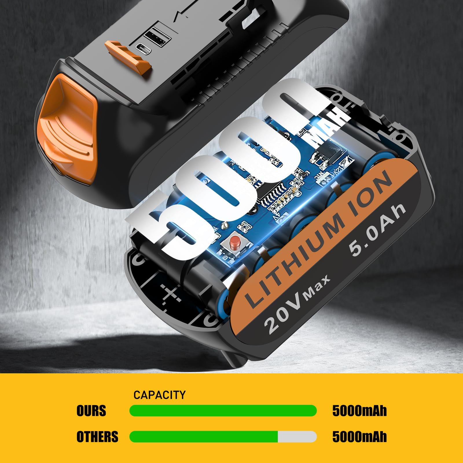 【Built-in USB Port: Power Tools + Devices Instantly】 Charge phones, tablets, or accessories directly from your battery—no outlets needed! Perfect for job sites, camping trips, or emergencies. Stay connected while your tools run.
