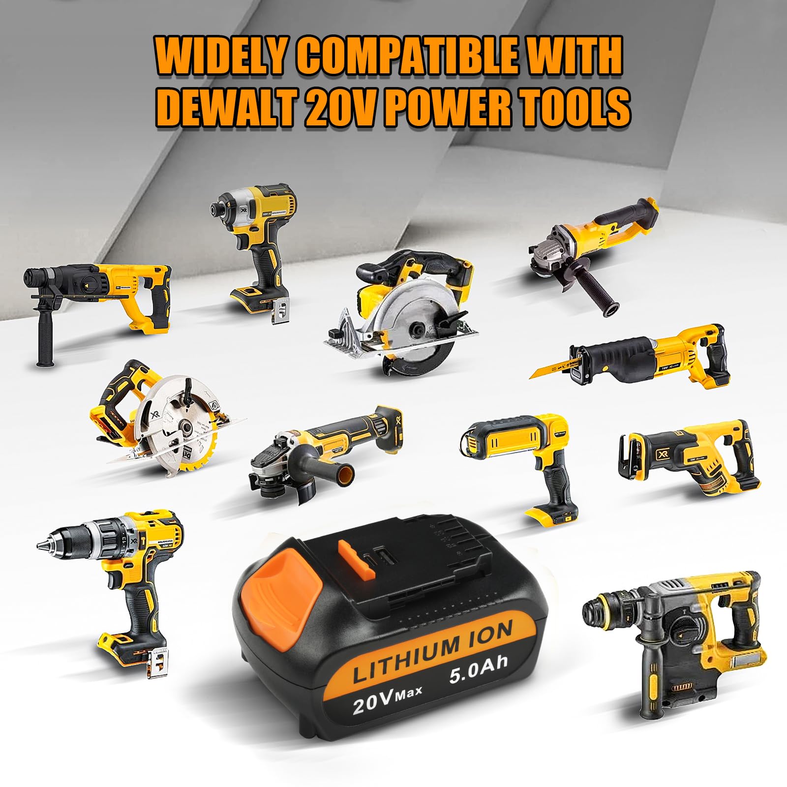 【Large Capacity Battery】Replacement for dewalt 20v battery with 5000mAh, Saves you time by charging up to 12V-20V lithium-ion batteries in less than 90 minutes. Built-in LED indicator allows you to better detect the battery status. Large enough capacity for daily work.
