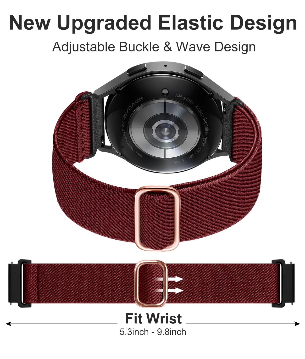 【Adjustable Comfortable Size】 Lerobo stylish replacement wristband straps compatible with Samsung Watch 6 44mm 40mm 43mm 47mm with latest elastic material and adjustable metal buckle design allows you to adjust watch band to your comfort level, fit for 5.3"- 9.8" (130mm-230mm) wrist of women men. You don't need to worry about buying the wrong size.