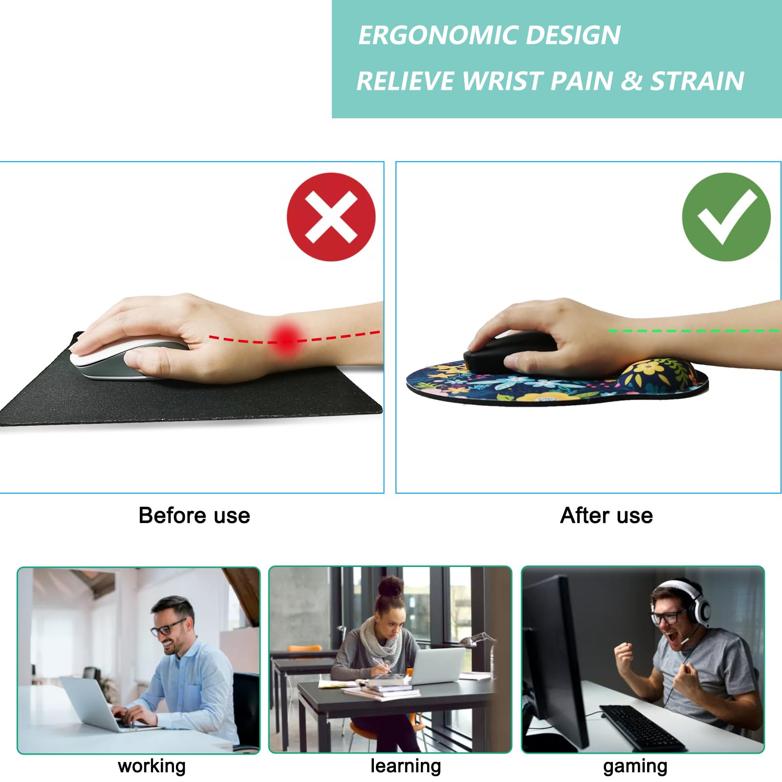PROTECTION - Protect your wrist, shoulder by using our mousepad with wrist support. It can reduce fatigue, relieve pressure on your hand, wrist, elbow and shoulder, avoid carpel tunnel syndrome, and avoid excessive friction between wrist and desk.