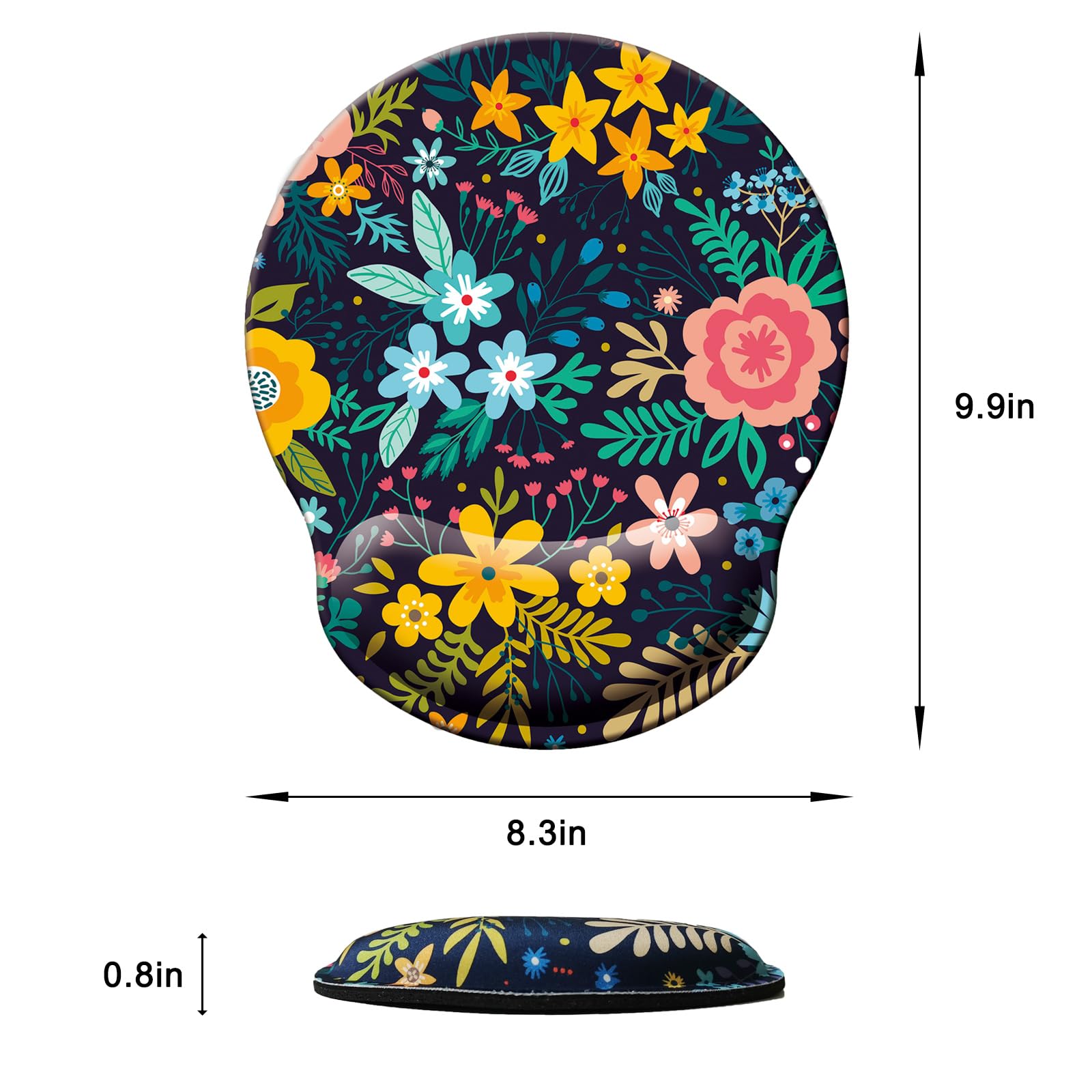 ERGONOMIC - Approximately 9.9 in x 8.3 in, 0.8 in thick. The reinforced edges are not easy to deform and damage, no curl up on edges. Ergonomic soft wrist rest mouse pad provide good touch and comfortable support for your wrists. Keep arms, wrists, and hands from getting sore when using computer for long time.