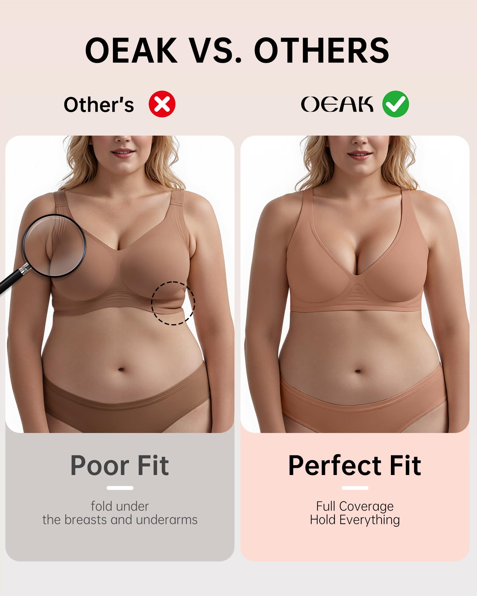 Stylish Deep V Bras for Women - The OEAK Wireless bra adopts a cute plunge design, which gathers and lifts your breasts, setting off the breast line to make your breasts more upright, round, and perfectly shaped. It showcases the seductive collarbones and cleavage under t-shirts and other clothing. The seamless Deep V bras are particularly effective in showcasing a beautiful neckline, making them ideal for wearing under low-cut tops and dresses, thus making your outfit simple and elegant.