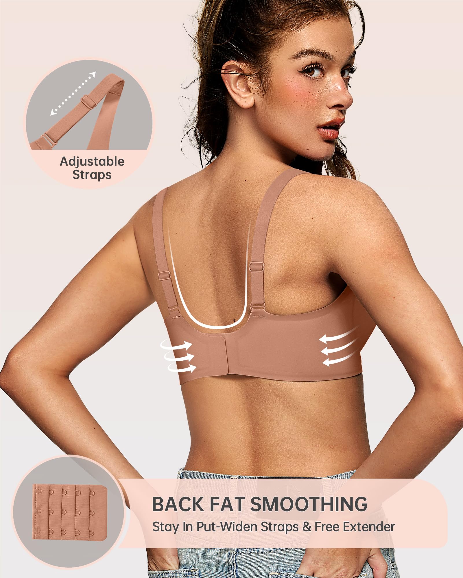 Seamless Bras with Sexy U-Shaped Back - These invisible bras with adjustable, non-slip straps provide better support and reduce pressure on the shoulders and neck. The seamless U-shaped back design stays hidden under any outfit, including backless tops. The integrated back hooks and widened sides make the bras supportive and ensure back fat smoothing.