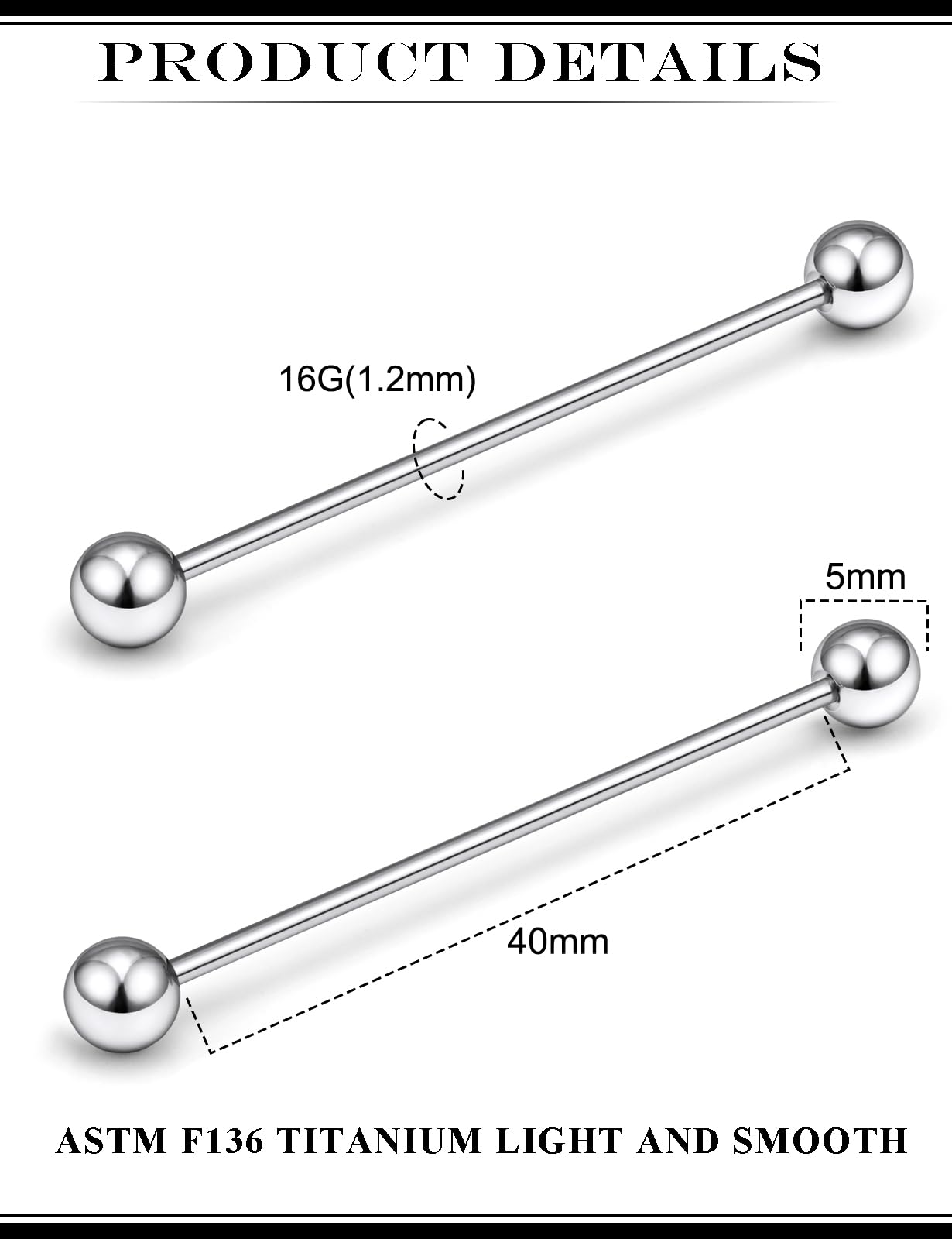 【Order includes】: 1 Pair straight barbell industrial piercing jewelry, sturdy and durable, operation is very simple. comfortable to wear without sharp edge