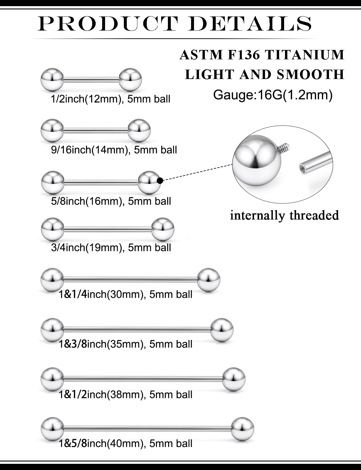 【Suitable for】: These titanium straight barbell piercing jewelry can be used as industrial barbell, industrial piercing, industrial jewelry, industrial piercing jewelry, industrial earrings