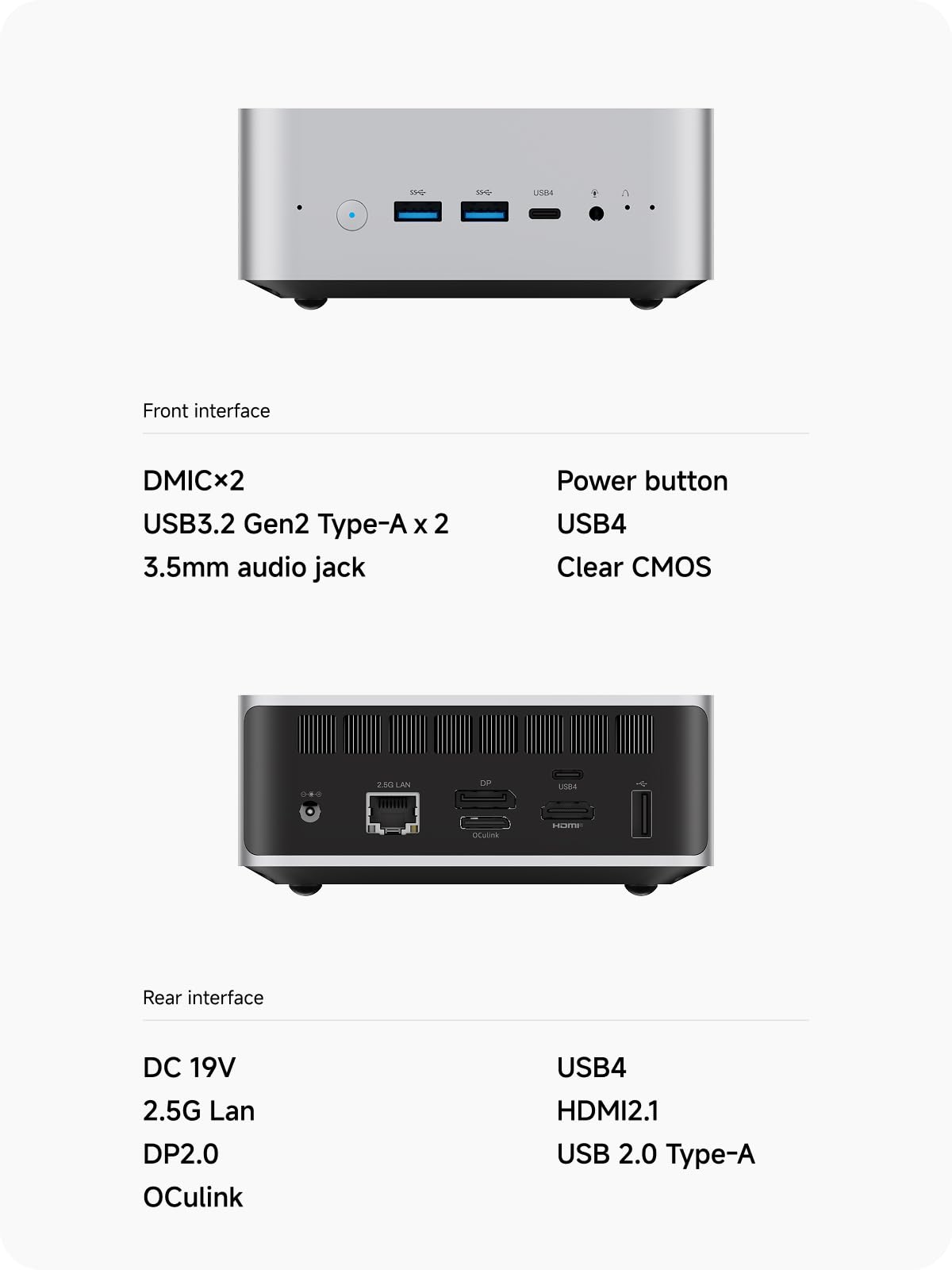 NOTE:*Does not support hot swapping. OCuLink requires an M.2280 PCIe 4.0 SSD slot. Compatible with the MINISFORUM DEG1 eGPU dock.