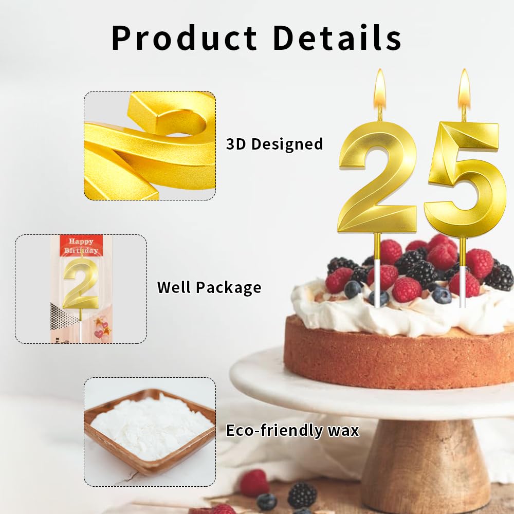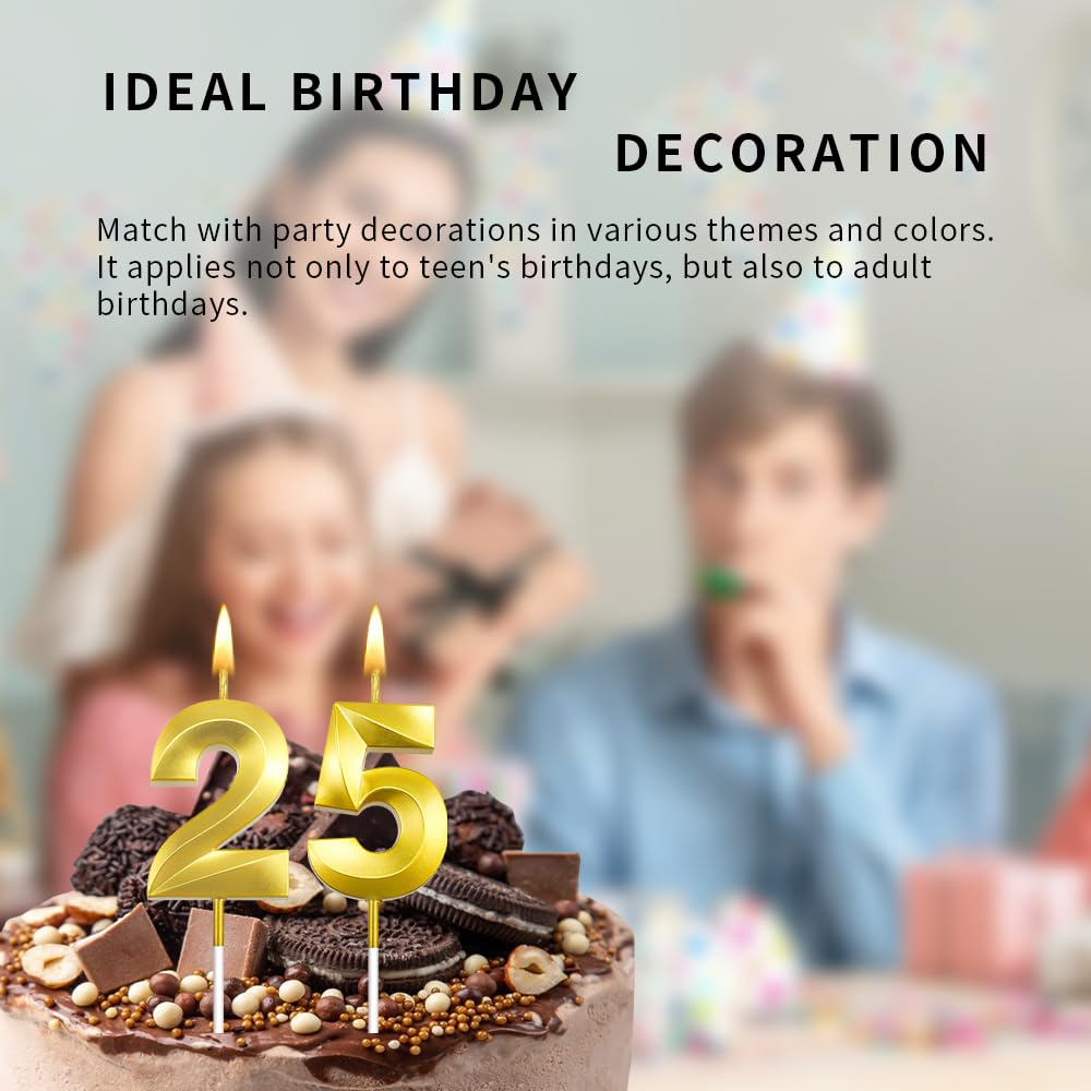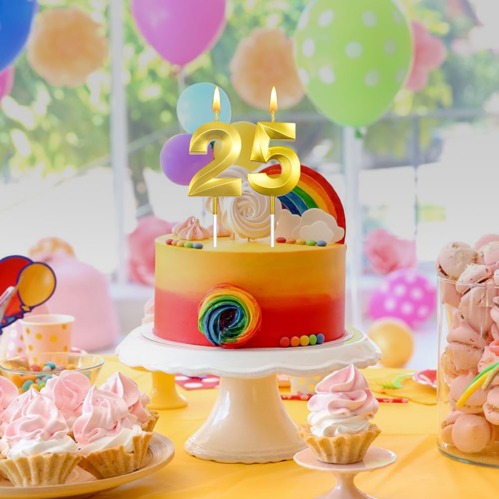 25th Birthday Candle 25th Candle for boy 25 Birthday dcoration for Girl Gold Candle