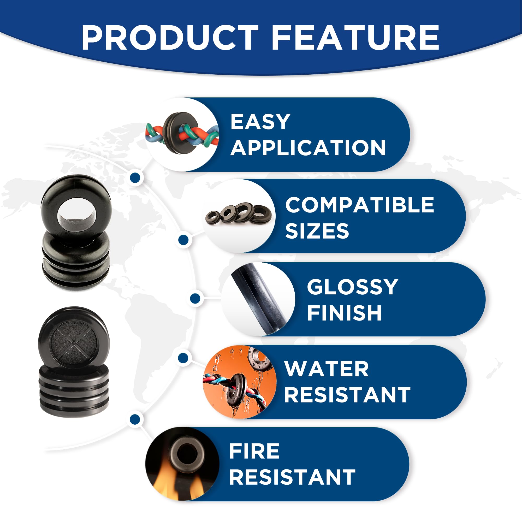 Broad applicability: rubber grommets designed for heavier-duty applications used in almost every industry including electronics, automotive, construction, data centers, telecommunications & medical equipment for reducing shock risks & safety purposes