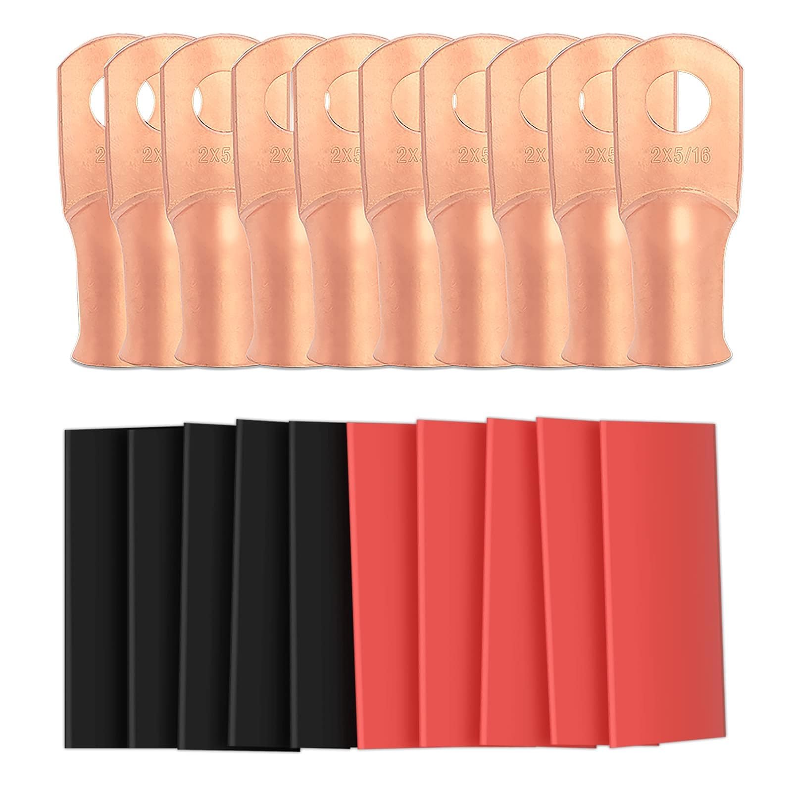 βγWhat You Will Get:γIn this set, we offer 10pcs 2 Awg - 5/16" (M8)ring terminals copper lugs tube end termination ring terminals for your work, 5Pcs black and 5 red 3:1 Dual Wall Adhesive Heat Shrink Tubing Tube.