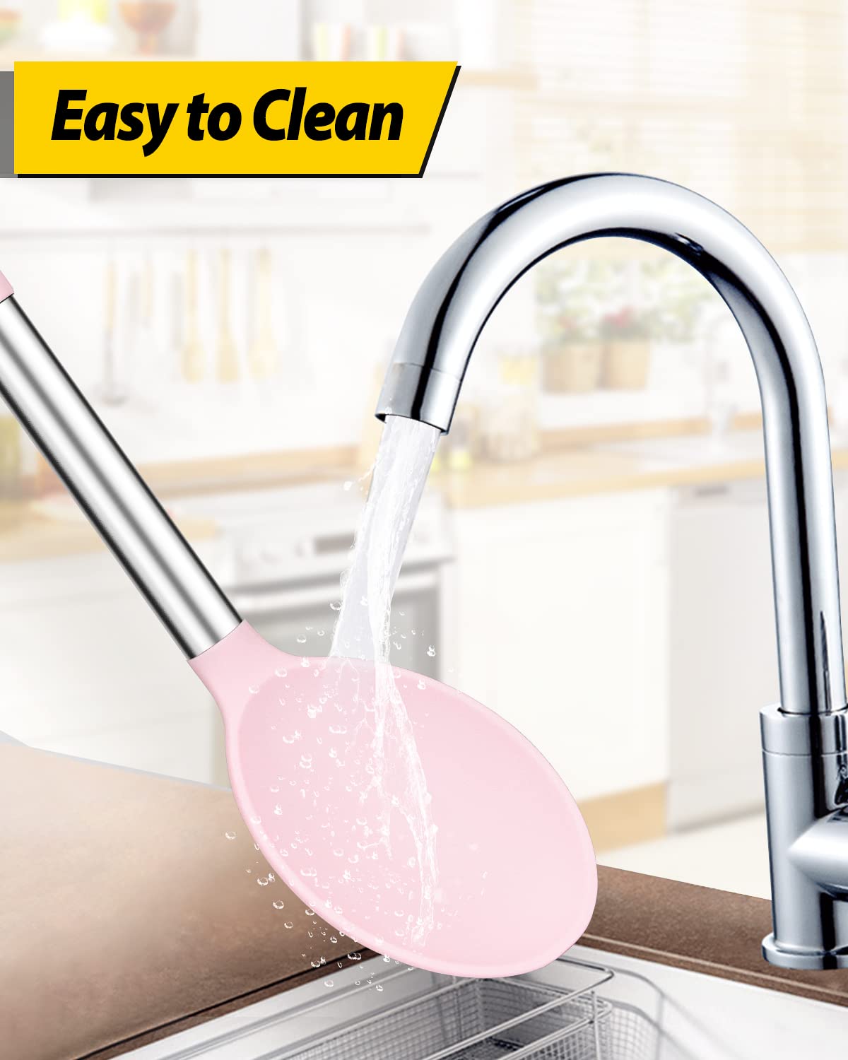 More Safe and Healthy : Our silicone spoons are made of food-grade silicone, free of BPA;Even at high temperatures, there is no need to worry about melting or deforming;And the soft silicone head won't scratch the coating, it can better protect your pot