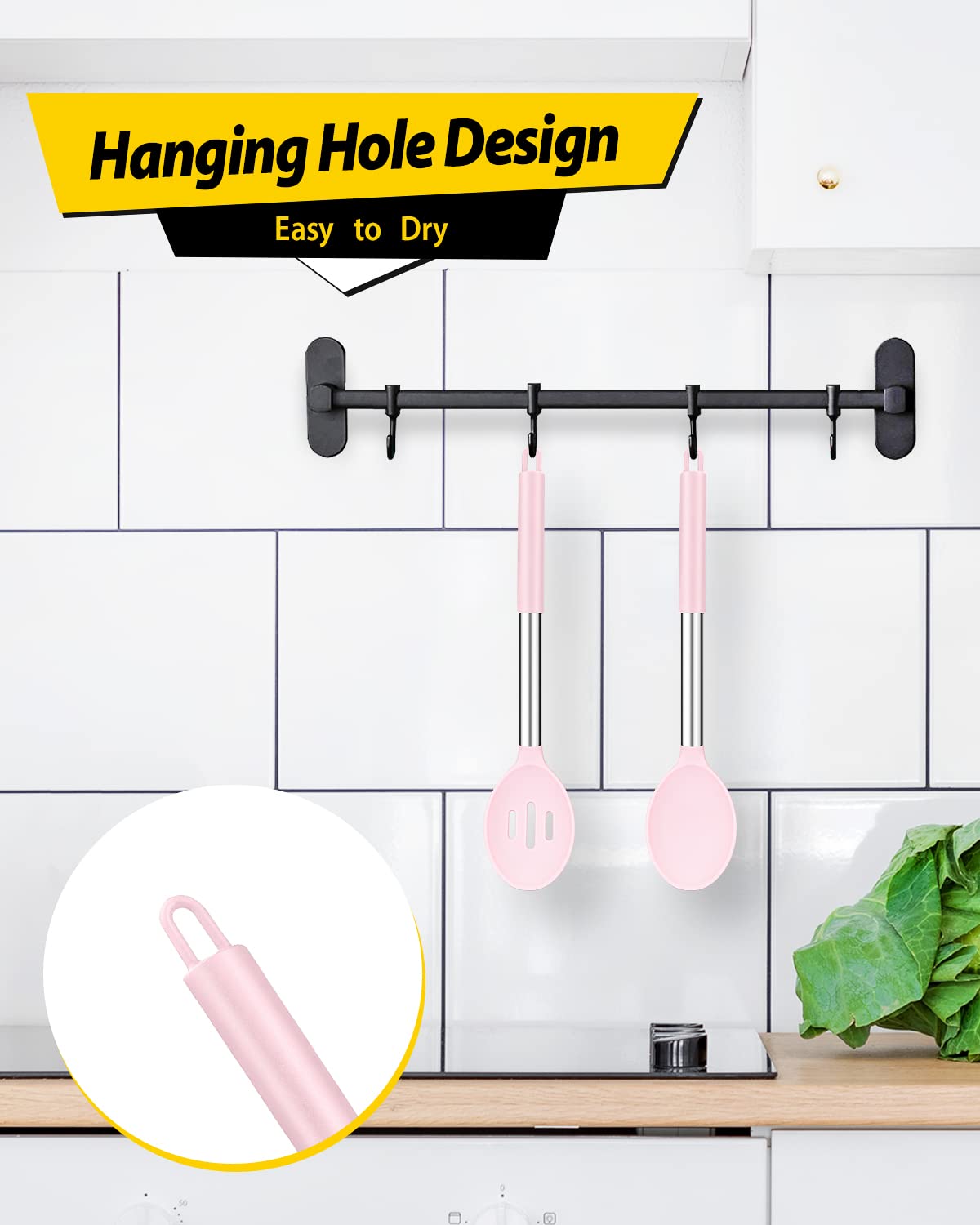 Just Want To Provide The Ideas For You : Large cooking spoon used to hold food more convenient; Slotted Spoon can quickly drain the water; Whether it is used for draining or serving food, our large silicone cooking spoon will add more fun to your kitchen